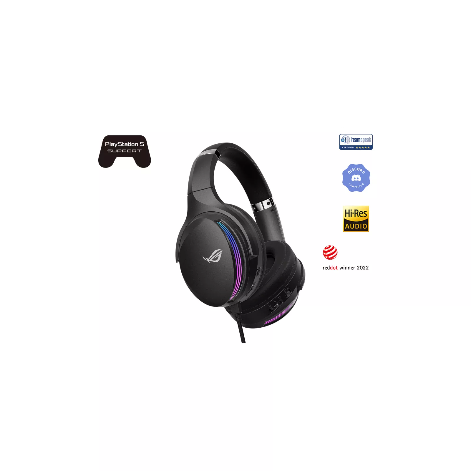 Игровая гарнитура с четверним ЦАП ESS 9280: полноцветная подсветка, глубокий бас, виртуальный пространственный звук формата 7.1, микрофоны с технологиями формирования луча и интеллектуального шумоподавления, регулятор громкости игрового чата, совместимость с различными платформами .