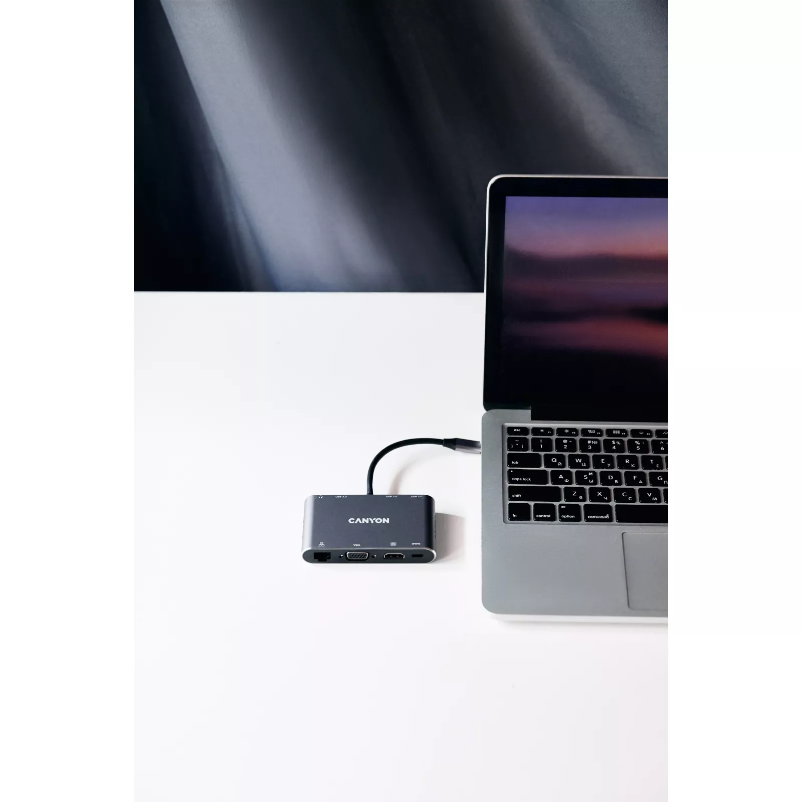 Хаб DS-14 соединяет один USB-C порт с восемью разноплановыми разъемами. Монитор можно подключить через порт HDMI или VGA. Предусмотрен мини-джек для наушников или колонок. Три порта USB-A 3.0 позволят с удобством подключить сразу три периферийных аксессуара. Разъем для зарядки USB-C PD мощностью до 100 Вт позволяет заряжать подключенное устройство с оптимальной скоростью. С помощью хаба можно подключиться к сети через Gigabit Ethernet. Легкий и крепкий корпус из алюминия помогает сохранить качество передачи сигнала. “Plug and Play“ – подключи хаб и работай без установки дополнительного ПО. Благодаря компактному размеру хаб займет минимум места в сумке. Отличное сочетание габаритов и функциональности!