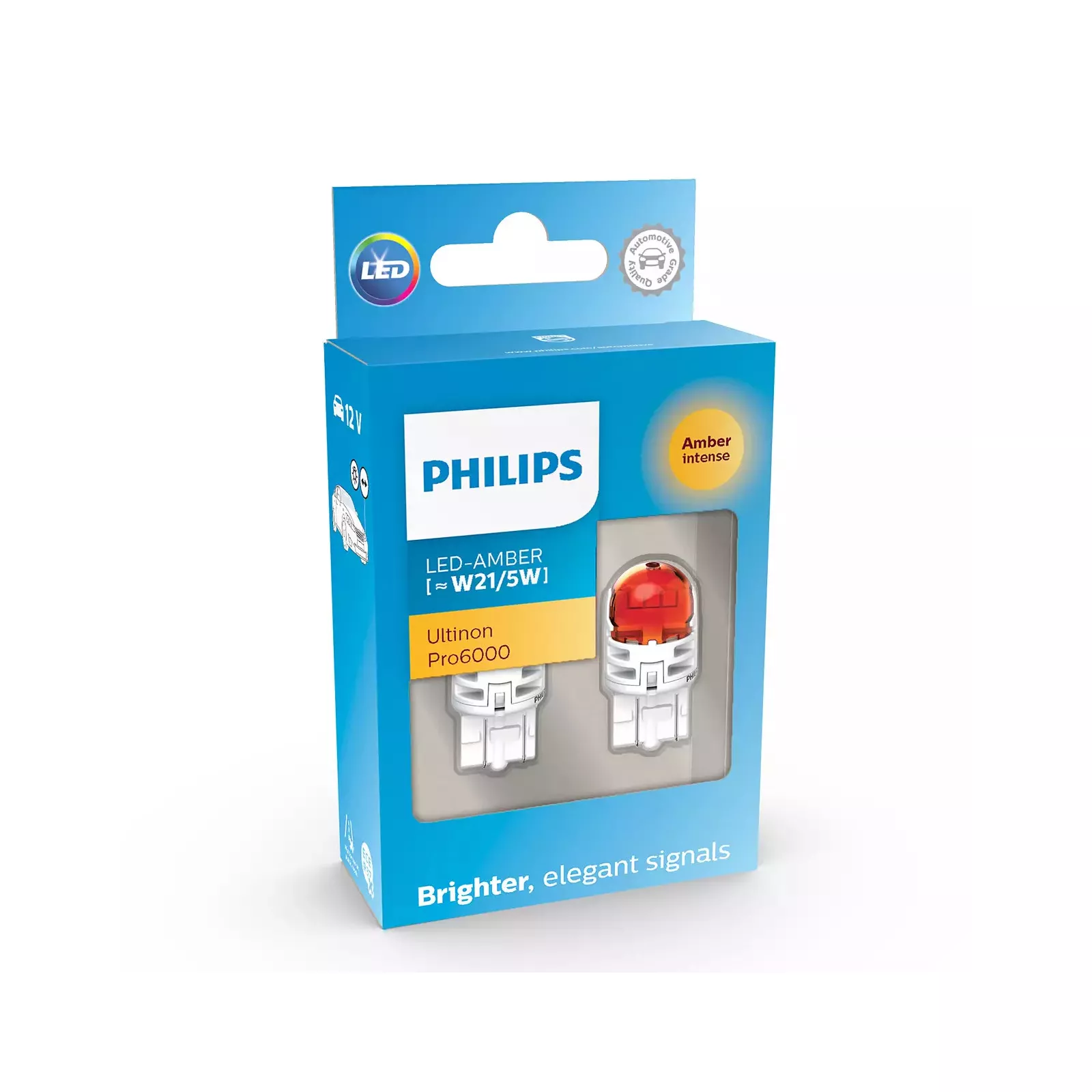 Светодиодная лампа вспомогательного освещения с очень высокими показателями яркости и долговечности. Отлично подходят для установки в задние фонари легковых автомобилей с напряжением бортовой сети 12 В и цоколем для установки W21/5W. Лампы PHILIPS LED Amber Ultinon Pro6000 12В W21/5W 11066AU60X2 (2 шт.) излучают очень яркий свет, который более заметен и обеспечивает безопасность при движении по дорогам общего пользования. Использование фирменных светодиодов Philips и усовершенствованная система отвода тепла позволили достичь очень длительного срока службы ламп – до 5000 часов непрерывного свечения.