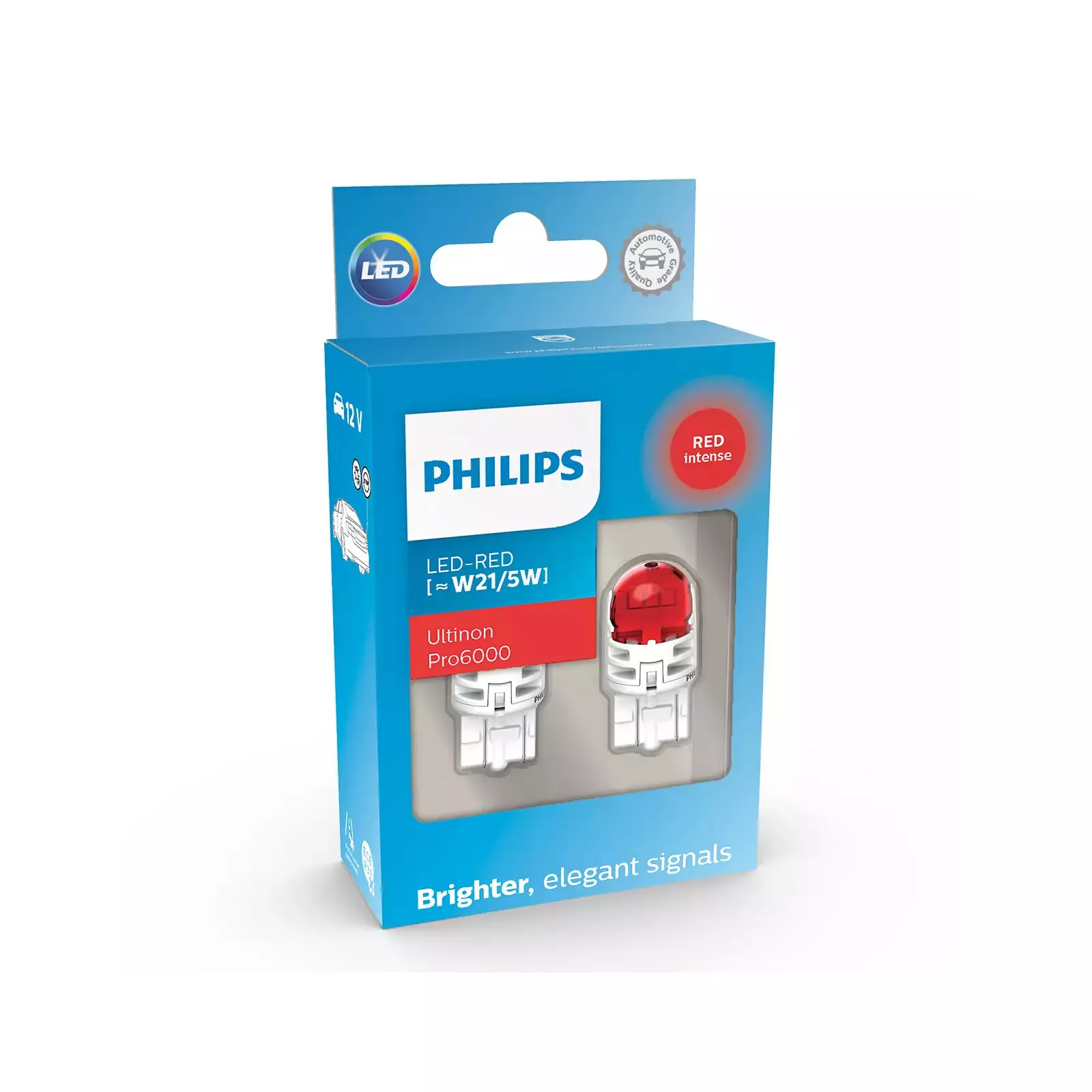 Светодиодная лампа вспомогательного освещения с очень высокими показателями яркости и долговечности. Отлично подходят для установки в задние фонари легковых автомобилей с напряжением бортовой сети 12 В и цоколем для установки W21/5W. Лампы PHILIPS LED Red Ultinon Pro6000 12В W21/5W 11066RU60X2 (2 шт.) излучают очень яркий свет, который более заметен и обеспечивает безопасность при движении по дорогам общего пользования. Использование фирменных светодиодов Philips и усовершенствованная система отвода тепла позволили достичь очень длительного срока службы ламп – до 5000 часов непрерывного свечения.