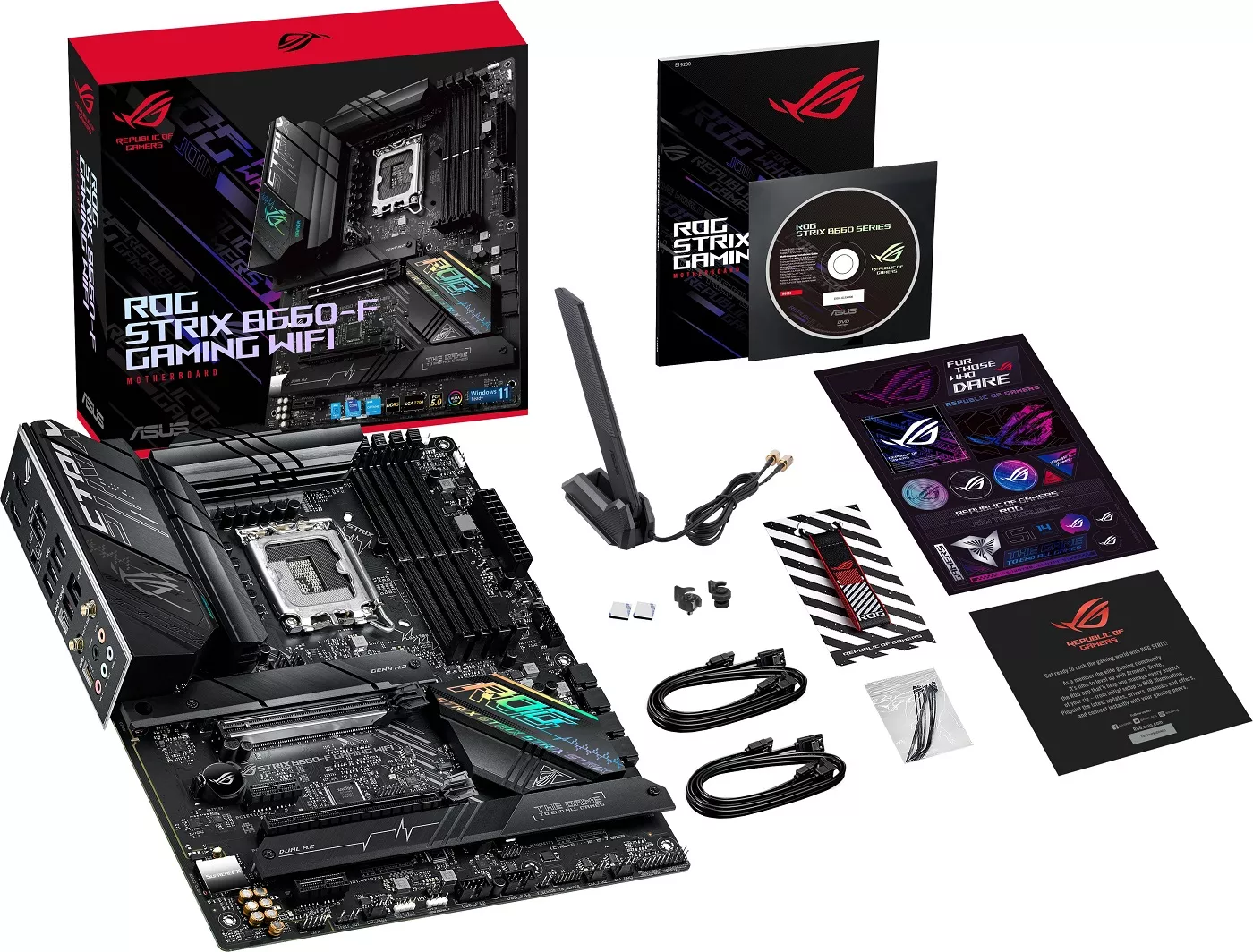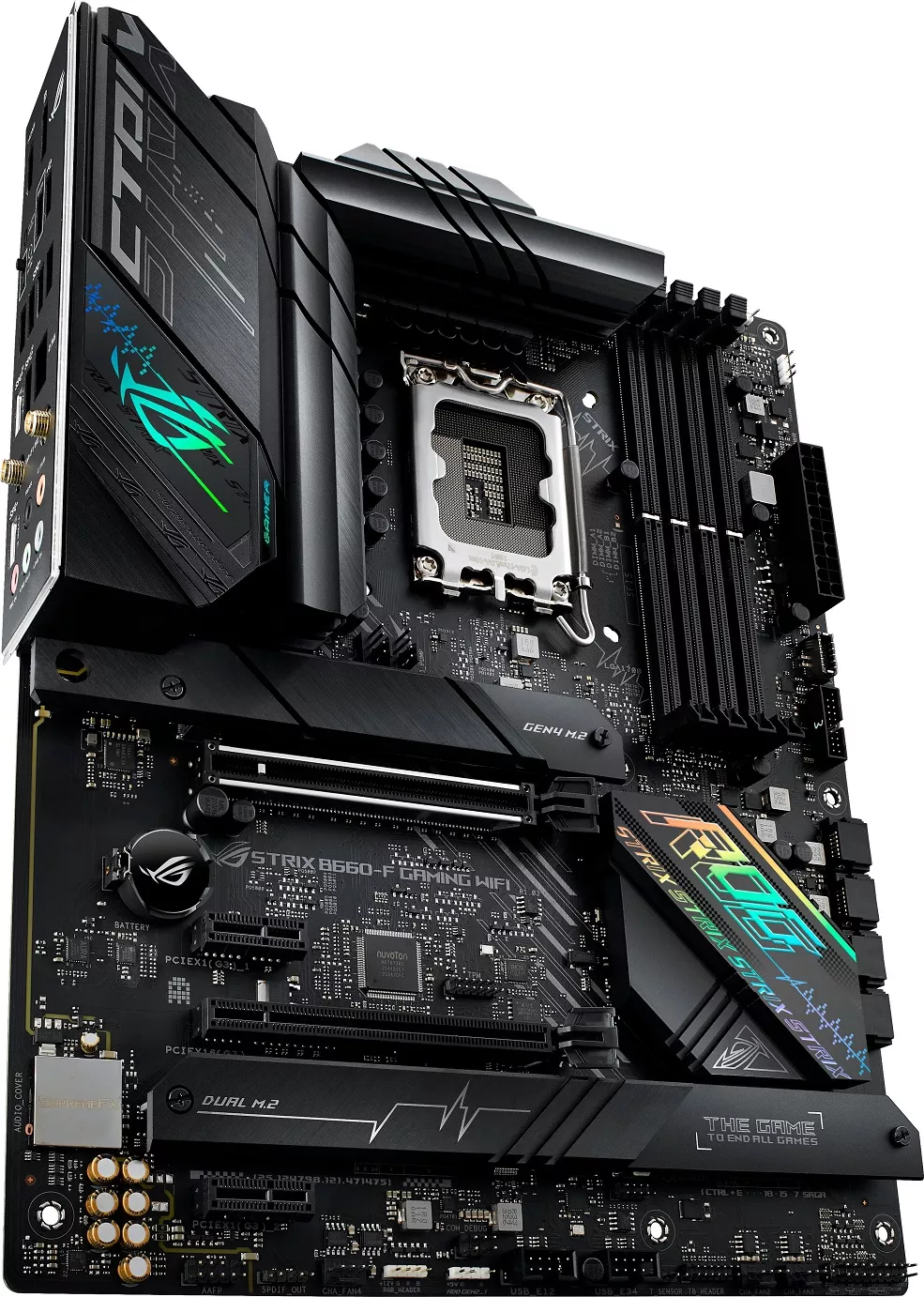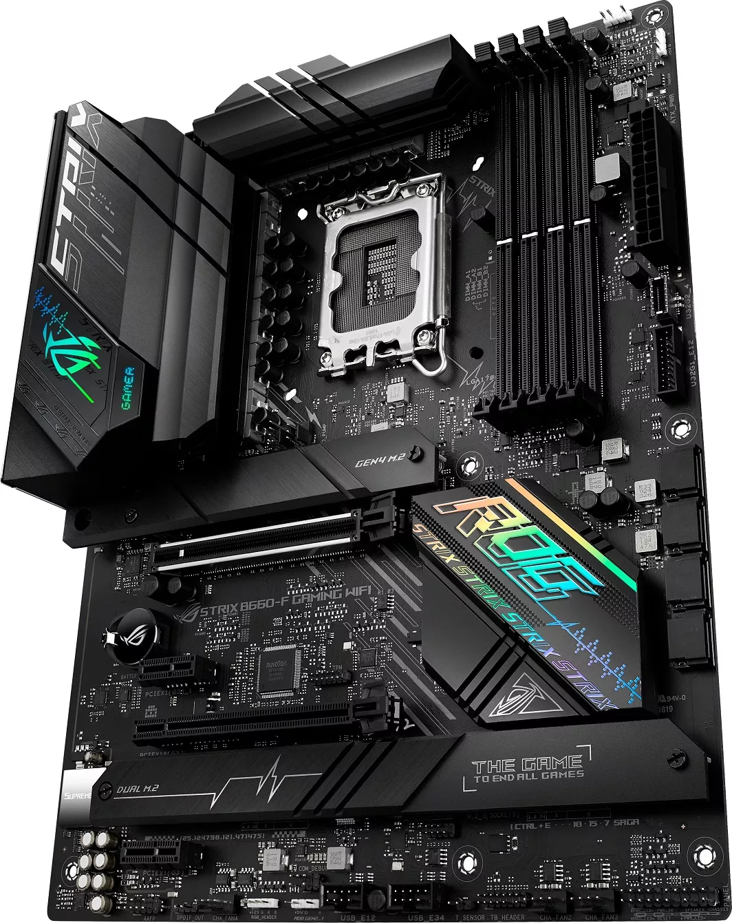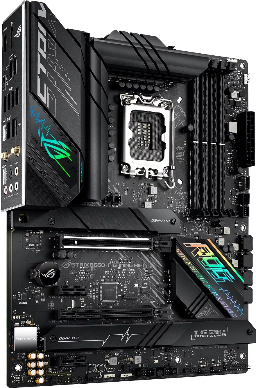 Контроллер 2.5G Ethernet от Intel позволяет увеличить скорость проводного подключения к сети, используя текущую кабельную инфраструктуру. Результат: онлайн-игры без лагов, трансляции видеороликов без пауз, передача файлов без длительного ожидания. ROG SupremeFX – это уникальное сочетание аппаратного и программного обеспечения для высококачественного звука. В плате ROG Strix B660-F Gaming WiFi она использует кодек ALC4080 для повышения частоты дискретизации звука по всем каналам со 192 до 384 кГц. Разъем на передней панели подключен к встроенному усилителю Savitech, способному обслуживать разнообразные геймерские гарнитуры и Hi-Fi наушники. ROG Strix B660-F Gaming WiFi привлекает внимание благодаря поразительному черному матовому покрытию, которое контрастирует с логотипом с яркой подсветкой Aura RGB . Параллельные линии и текст с точечным рисунком на кожухе интерфейсов, радиаторах M.2 и чипсета подчеркивают основные отличия плат серии ROG Strix: быстродействие, широкую функциональность и особый стиль. Инновационный крепеж Q-Latch упрощает установку и высвобождение SSD-накопителей формата M.2 – для этого не требуются никакие специальные инструменты. Конструкция крепления предполагает механизм фиксации накопителя в слоте M.2 без использования традиционных винтов. В серию ROG Strix входит широкий ассортимент продукции для геймеров: видеокарты, водяные системы охлаждения, корпуса, мышки, клавиатуры, которые объединяют единый стиль и высокое качество . < span>Интерфейс UEFI BIOS в стиле ROG предоставляет все необходимое для настройки, разгона и мониторинга системы, созданной на основе современных процессоров. Он имеет режимы для новичков и опытных пользователей. Читать полный обзор ›