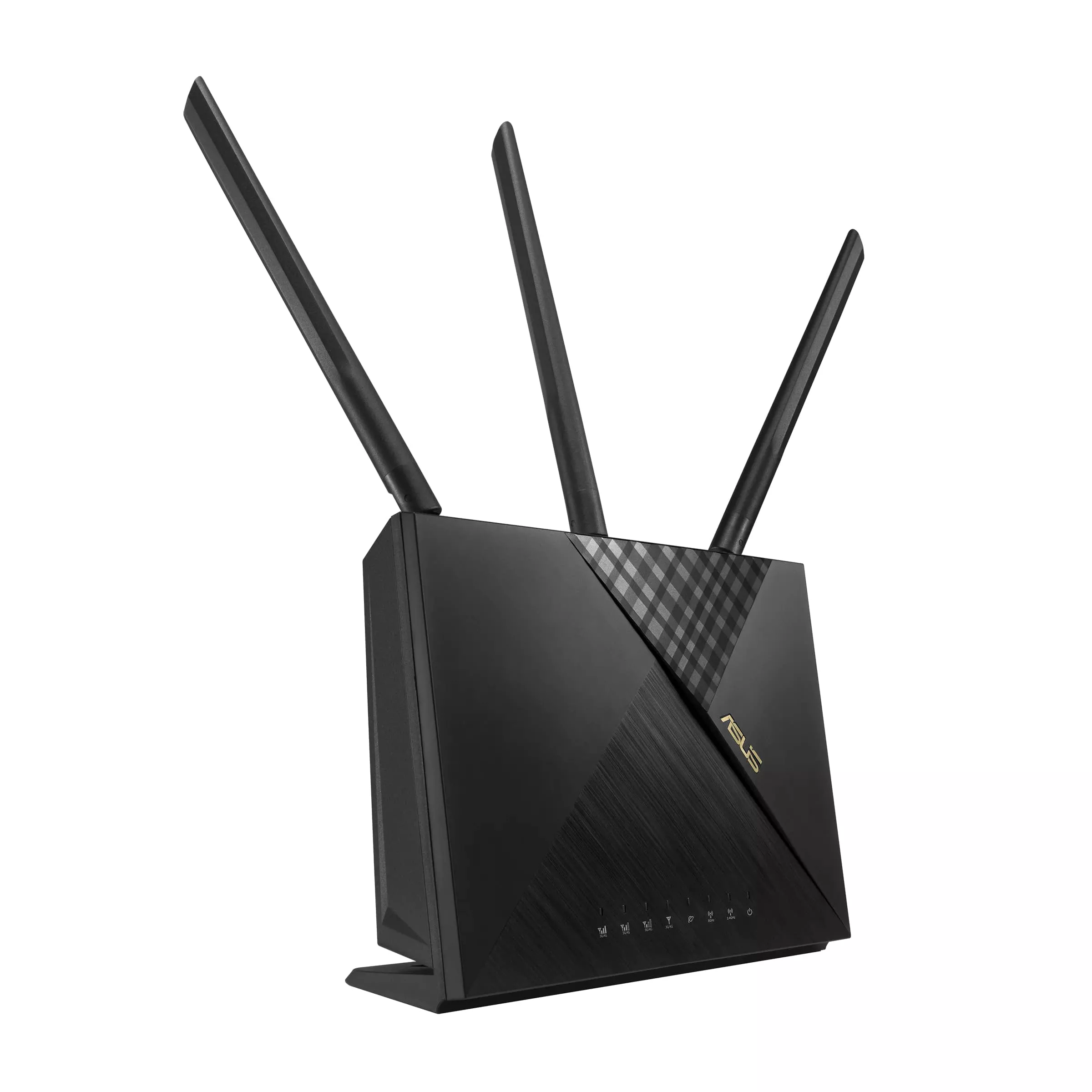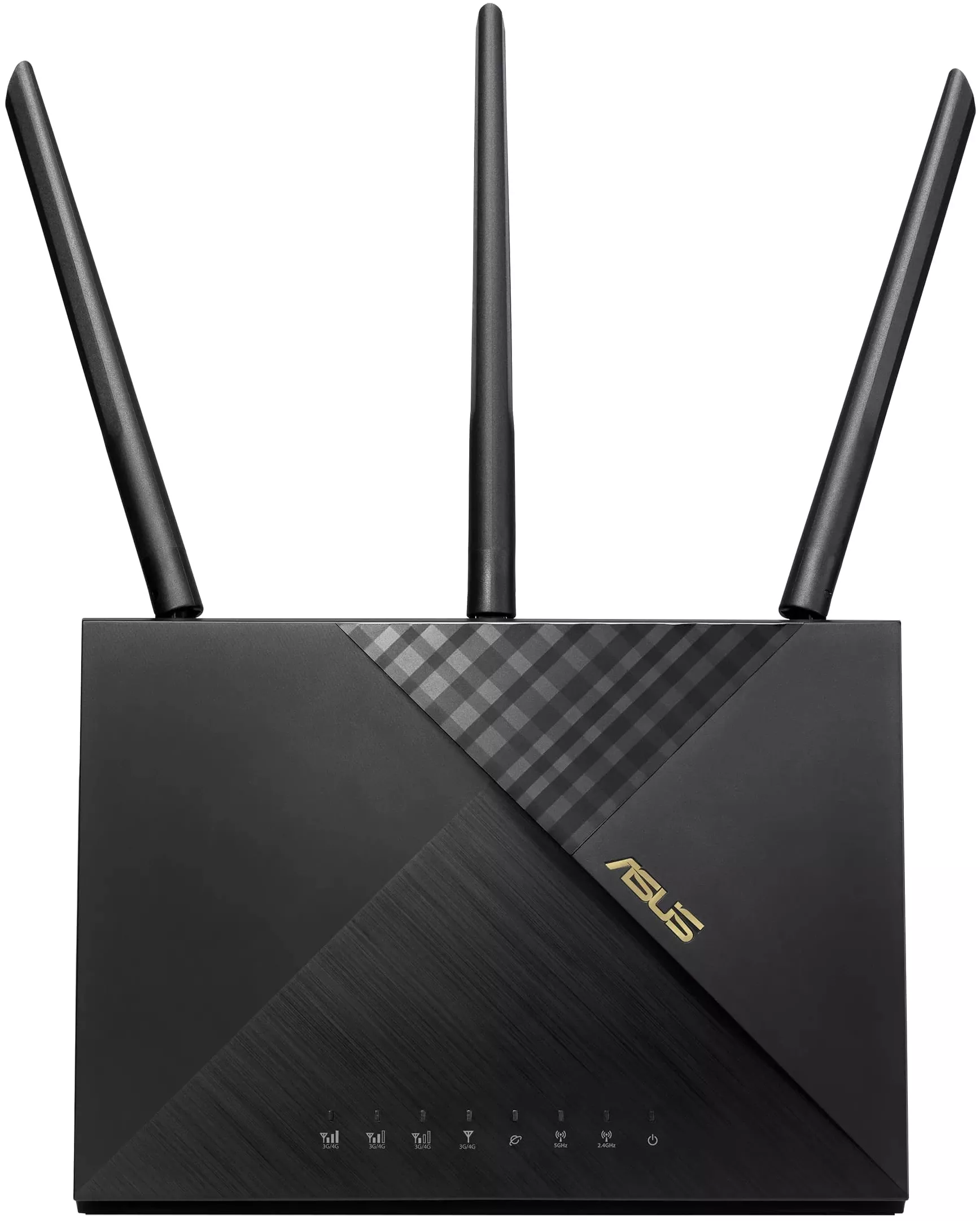 ASUS 4G-AX56 – это двухдиапазонный беспроводной маршрутизатор с антенной конфигурацией 2х2 и встроенным LTE-модемом. Используя широкие каналы связи (80 МГц) и квадратурную модуляцию 1024-QAM, он способен обеспечить общую скорость передачи данных в сети Wi-Fi на уровне 1800 Мбит/с: 547 Мбит/с в диапазоне 2,4 ГГц и 1201 Мбит/ с в диапазоне 5 ГГц. Таким образом, эта модель в 1,5 раза быстрее двухдиапазонных маршрутизаторов стандарта Wi-Fi 5 с аналогичной антенной конфигурацией и LTE-модемом.
