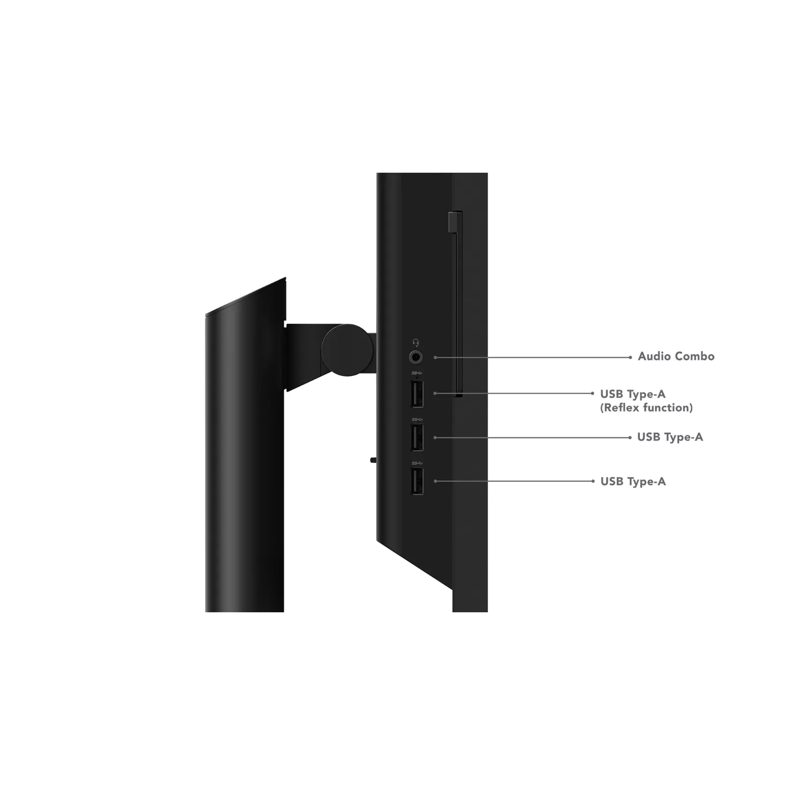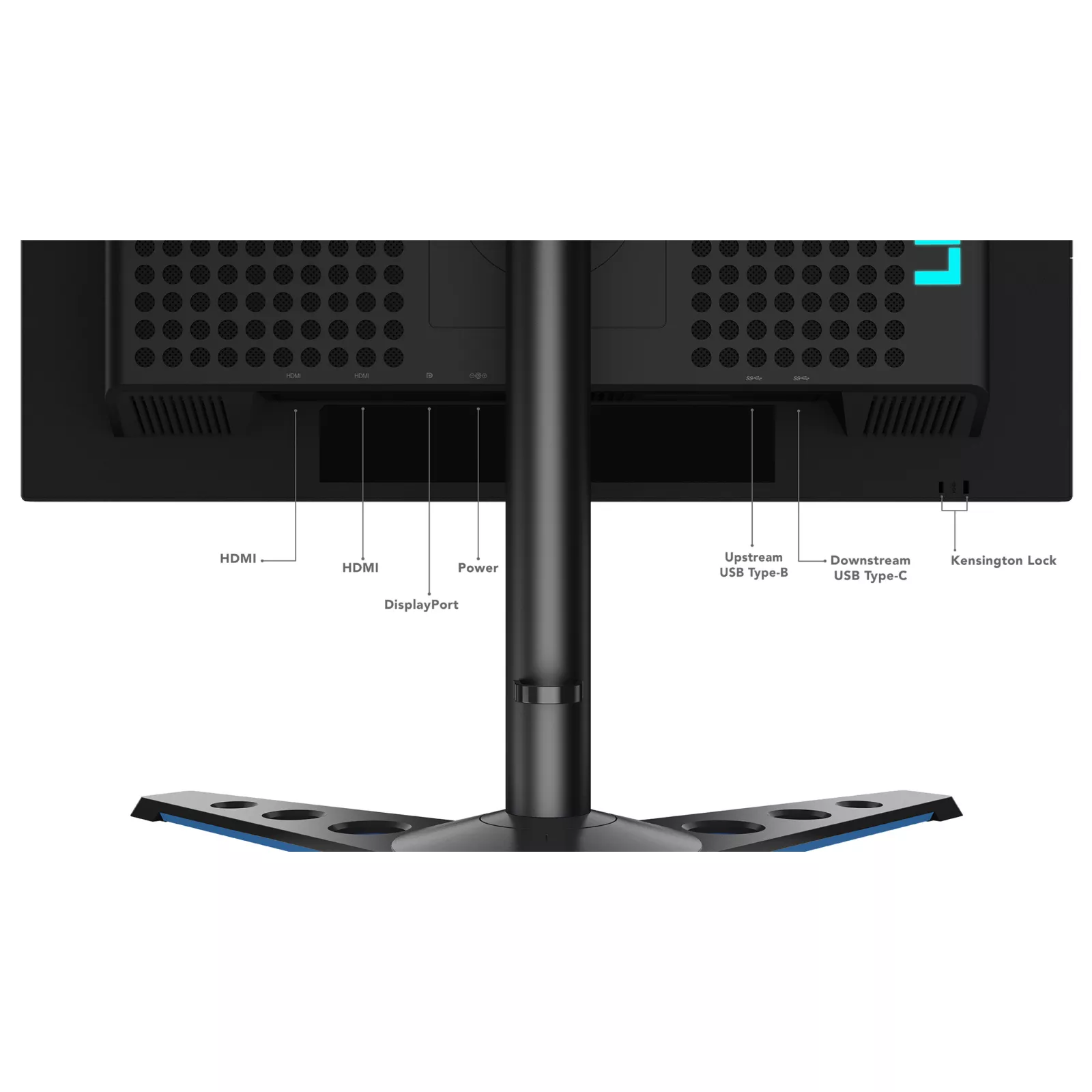 Для подключения периферийных устройств и аксессуаров предусмотрены порты и разъемы: два HDMI, DisplayPort, три USB 3.2, USB Type-C и аудиовыход 3,5 мм. Монитор оборудован слотом для замка Kensington, двумя динамиками и держателем для проволоки наушников.