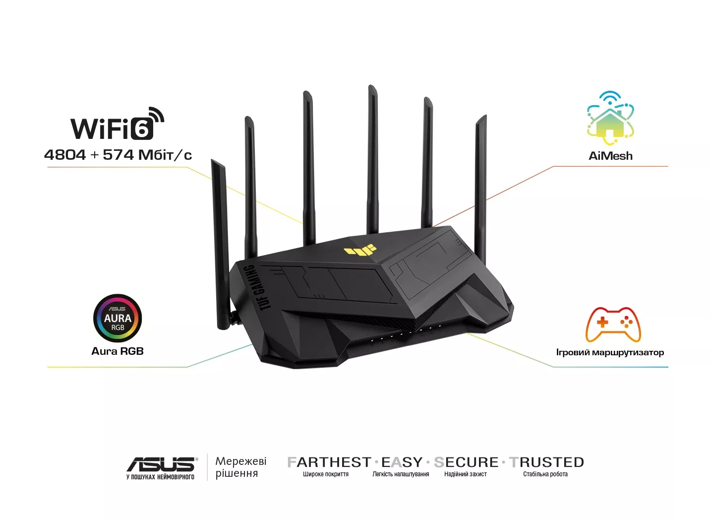 ASUS Маршрутизатор TUF-AX5400 4xGE LAN 1xGE WAN 1xUSB3.2 MU-MIMO OFDMA MESH gaming - купить в магазине цифровой техники a-techno.com.ua