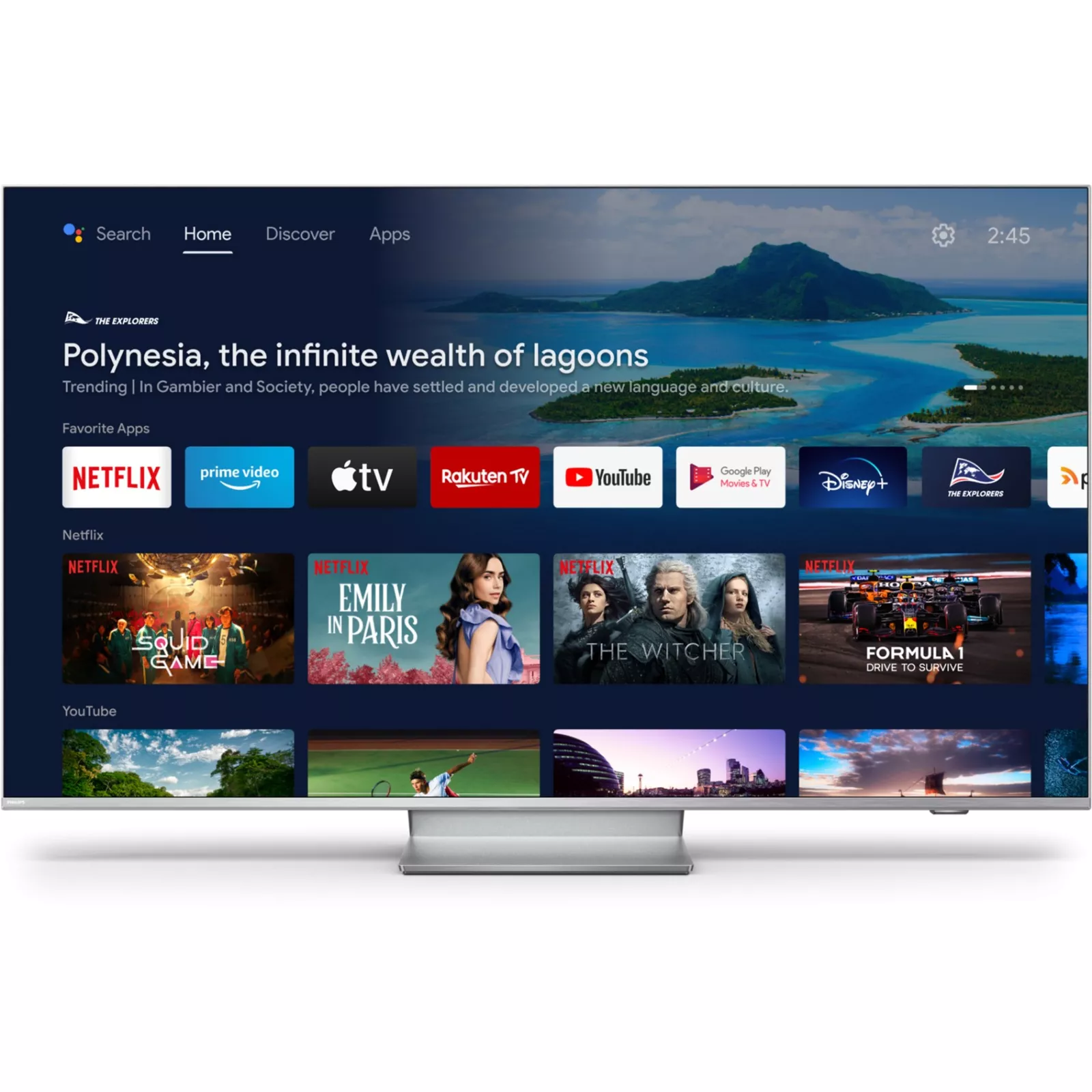 Philips Android TV обеспечит персонализацию главного экрана для отображения любимых приложений, что позволяет легко начать потоковую передачу любимых видео и шоу. Также можно продолжить работу с места остановки.