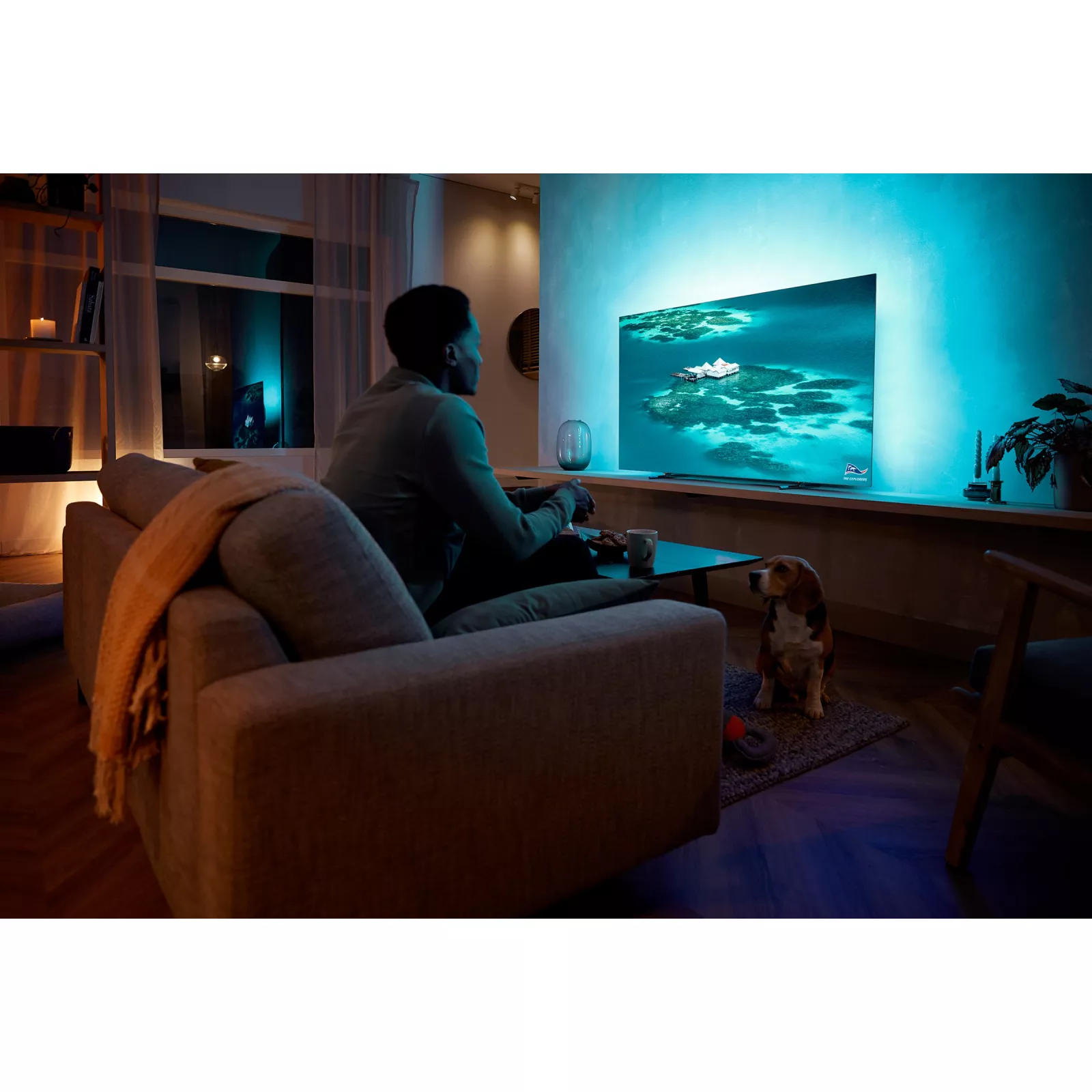 Просмотр Игры Полное наслаждение. -Телевизор Игры с быстрым отзывом, где вы всегда будете на высоте Захватывающий звук для шоу, фильмов и т. д. Захватывающая подсветка Ambilight усовершенствует просмотр любого любимого контента.