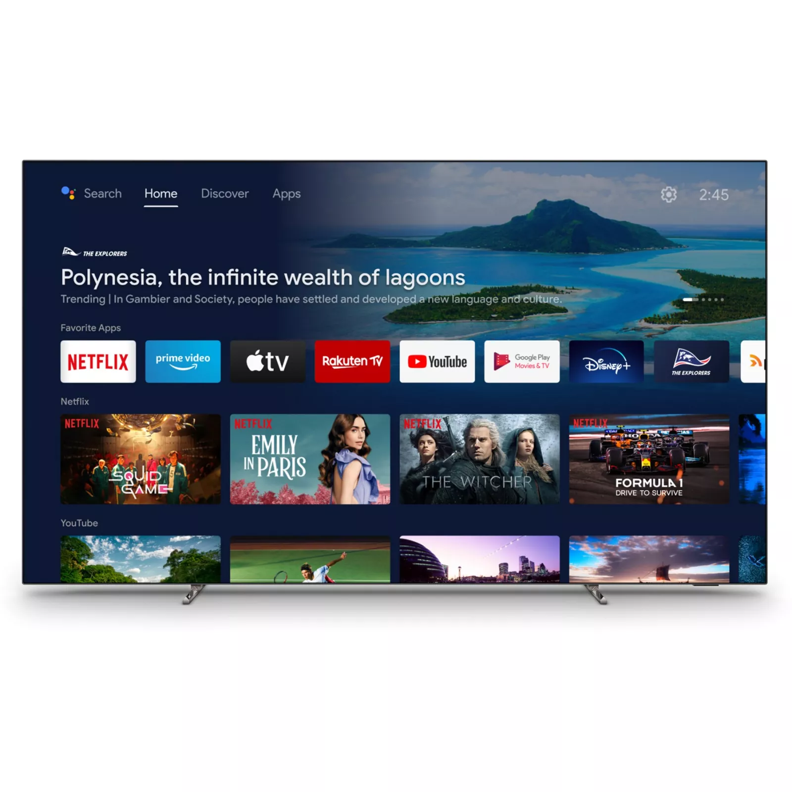 Ультратонкая металлическая рамка и темные хромированные металлические ножки подставки придают этому телевизору чувство стиля, а пульт дистанционного управления содержит функциональные клавиши для быстрого перехода в любимые сервисы потоковой передачи.