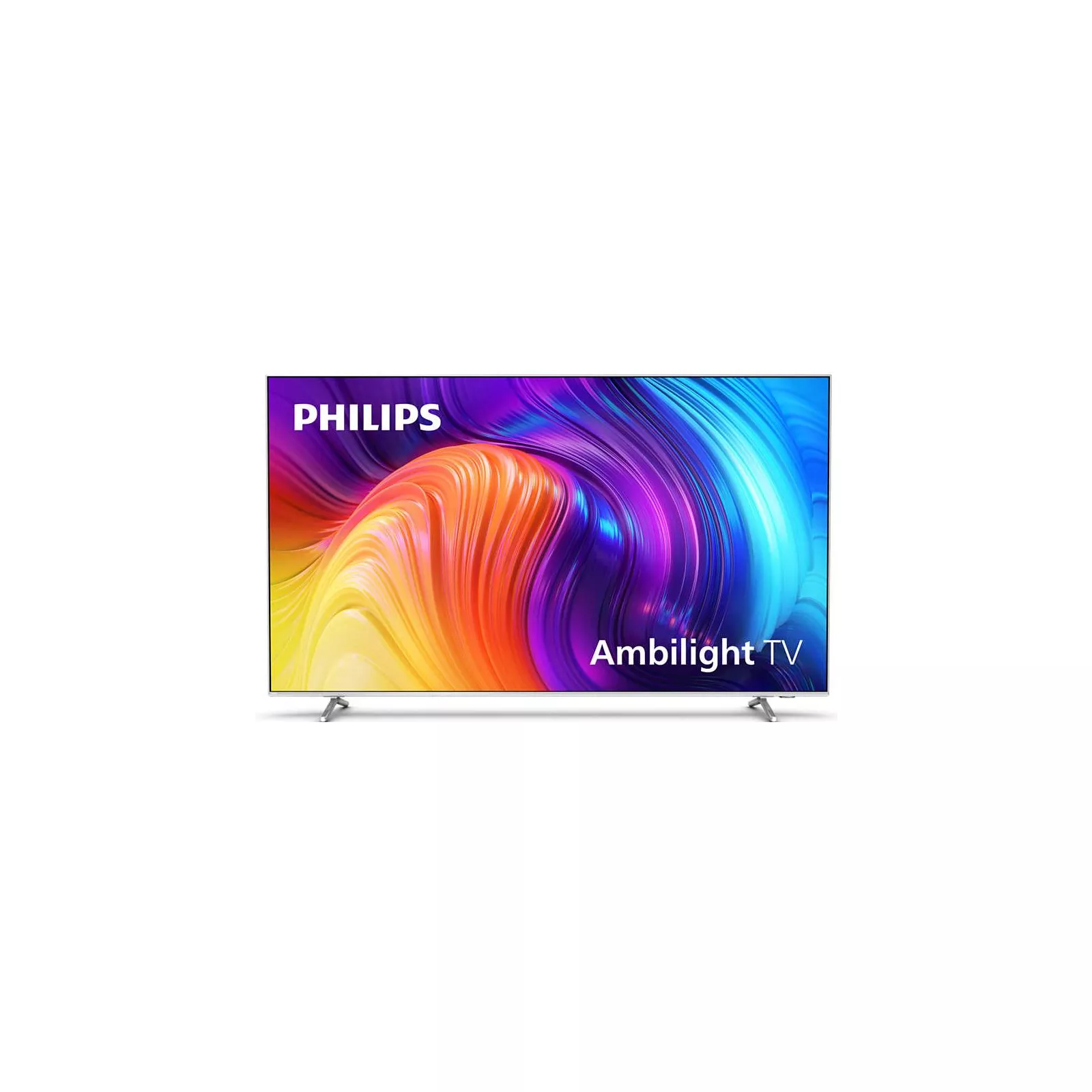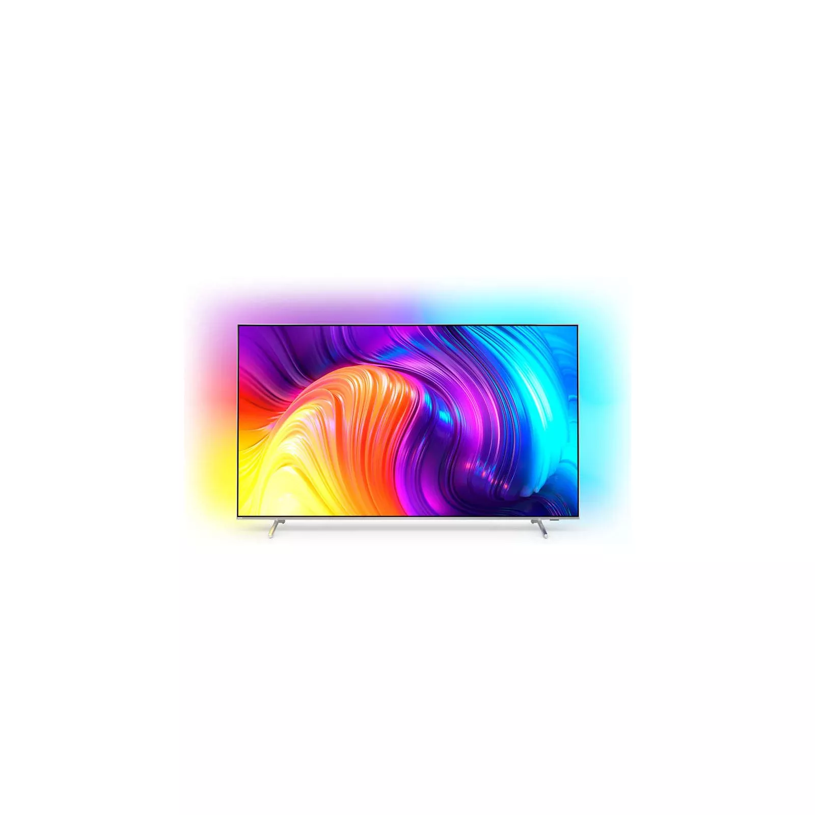 Благодаря подсветке Philips Ambilight со светодиодными индикаторами по краям телевизора, которые изменяют цвет в идеальной синхронизации с цветами изображения на экране или музыкой. имеет яркое HDR-изображение.4K UHD-телевизор Philips.