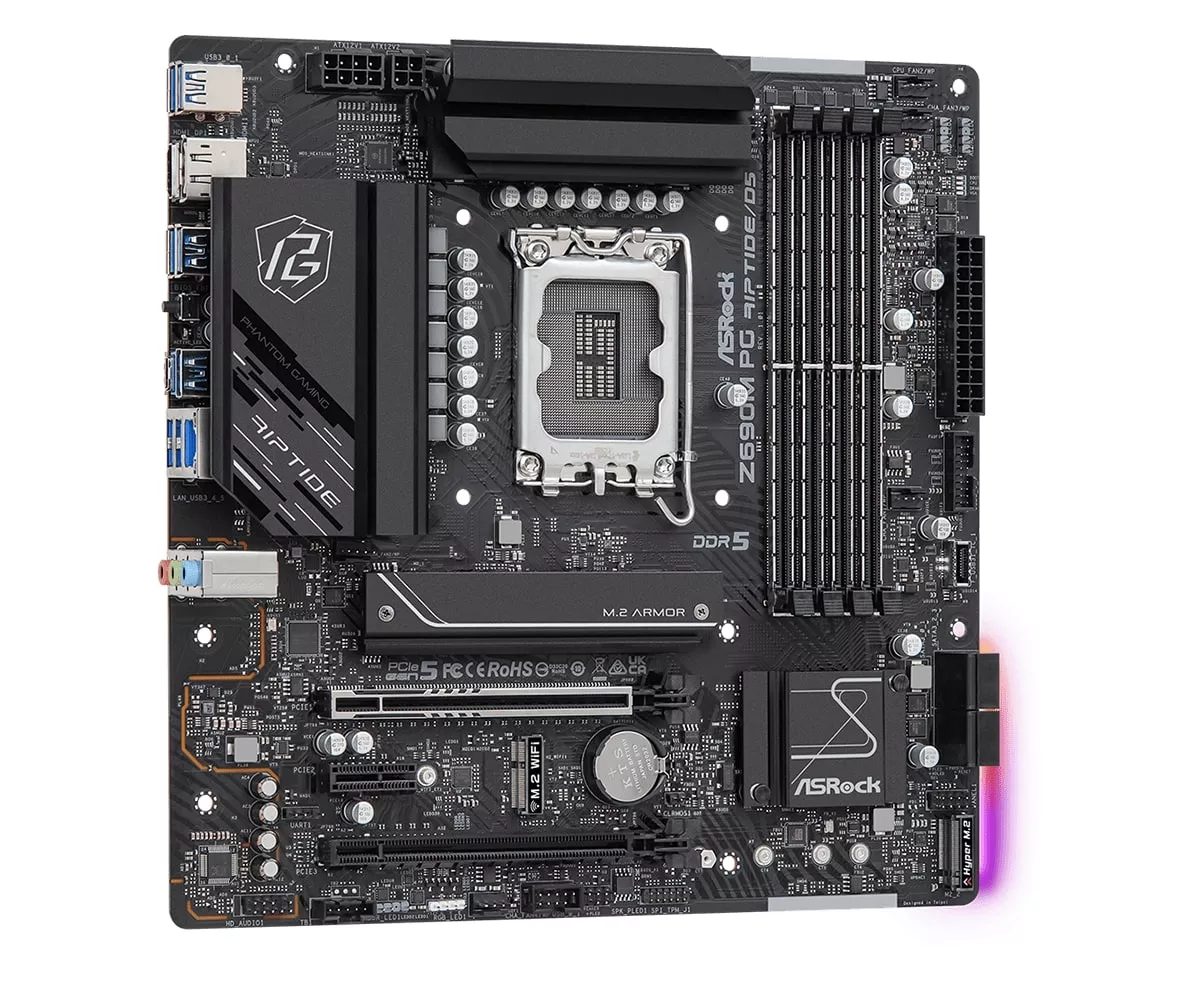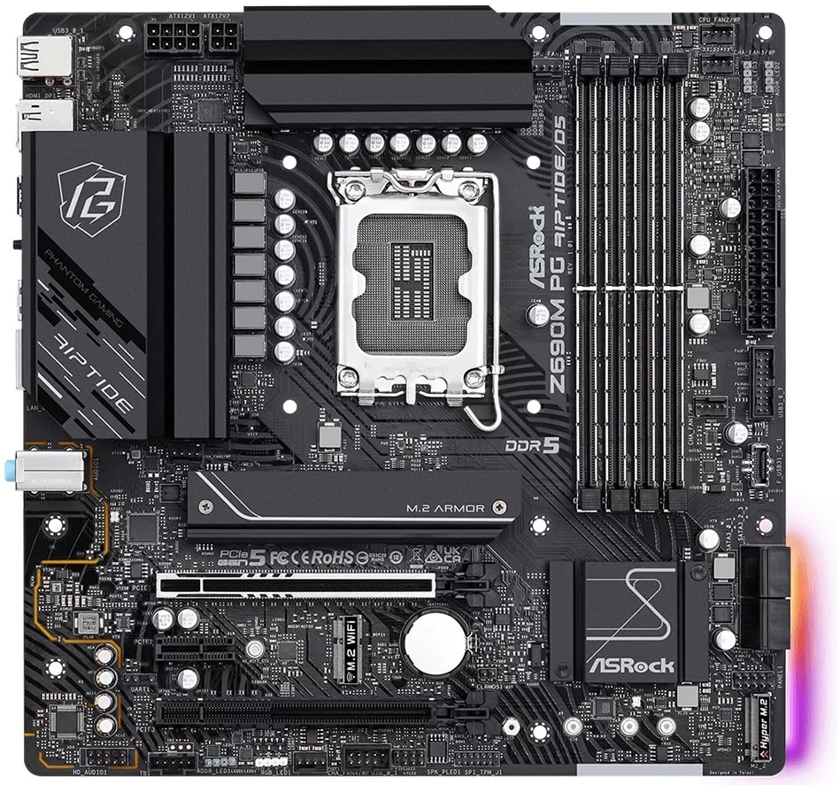 < div>Описание ASRock Материнская плата Z690M PG RIPTIDE/D5 s1700 Z690M 4xDDR5 M.2 HDMI DP VGA mATXЦелых 6 слоев печатной платы обеспечивают стабильность прохождения электрического сигнала и профилей напряжения, снижая температуры и повышая энергоэффективность при разгоне памяти! span>