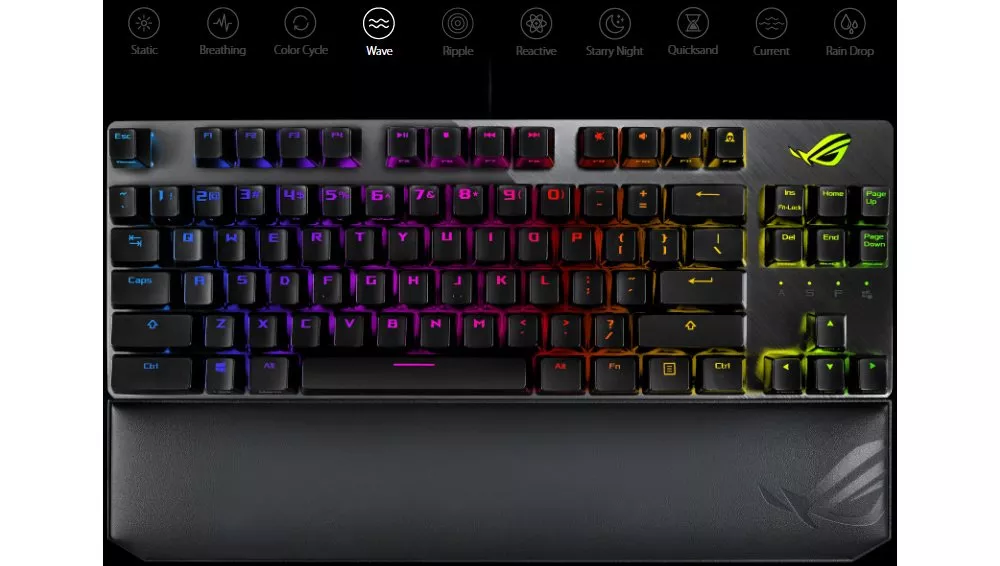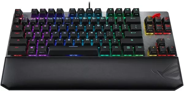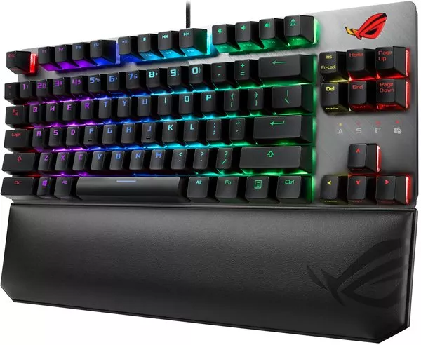 или тех, кому просто нужно больше места. Клавиатура поставляется со съемным кабелем, благодаря чему проще и безопаснее хранить и носить в рюкзаке. Шнур Type-C также можно использовать в качестве провода для зарядки мобильных устройств в дороге. пружины, быстрым срабатыванием и кривыми силы, настроенными ROG нажатия клавиш и отличной последовательности нажатия клавиш. Начальное усилие 40 г помогает предотвратить случайное нажатие клавиш, а усилие увеличивается до 55 г для идеальной обратной связи при отскоке. В результате нажатия клавиш происходят мгновенно и обладают плавным и линейным ощущением. переключая верхний ряд между мультимедийными или функциональными клавишами (Fn) режимы работы или игры. Клавиатура покрыта алюминиевой лицевой панелью для ежедневной устойчивости и обработана поразительной косой чертой, что придает ей немного стиля. NX TKL Deluxe мгновенно скрывает все программы и отключает звук, обеспечивая конфиденциальность в момент, когда она вам нужна. Украшенный культовым мотивом фигуры в плаще, второе нажатие Stealth возвращает все на круги своя. Под каждой кнопкой имеется отдельный светодиод RGB, индикаторы блокировки RGB и логотип RGB ROG. Он даже проектирует увлекательную подсветку RGB снизу, распространяя освещение за пределы клавиатуры. Благодаря технологии Aura Sync весь цветовой спектр и набор динамических световых эффектов находятся в вашем распоряжении, чтобы создать полную систему, которая уникальна для вас. Освещение Strix Scope NX TKL Deluxe также легко синхронизируется с большой экосистемой Aura, поэтому легко создать игровую среду, которая действительно сияет.