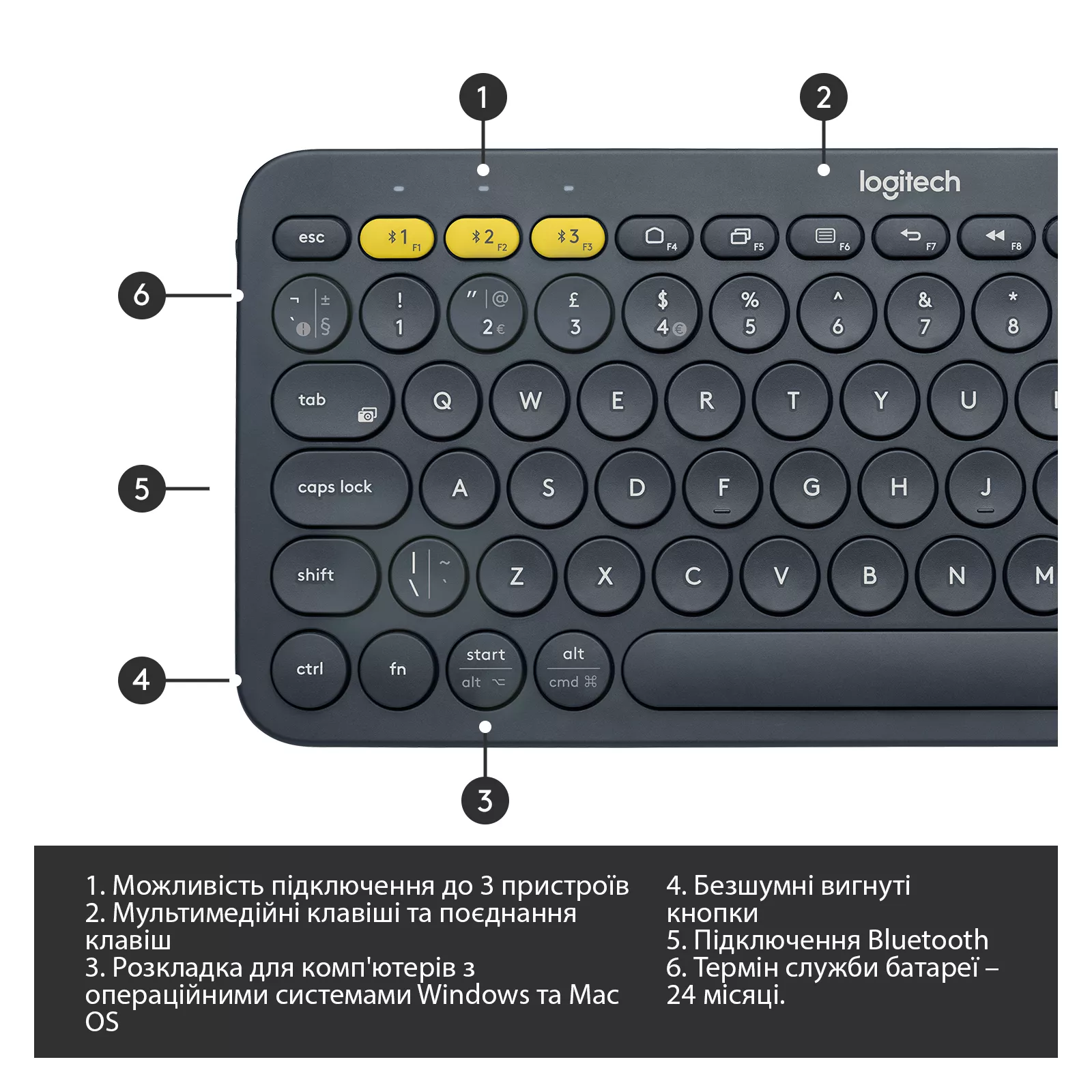 Все типы устройств и операционных систем. Клавиатура K380 Multi-Device может подключаться ко всем беспроводным устройствам Bluetooth с поддержкой внешних клавиатур; она совместима с ОС Windows, MacOS, iPadOS, Chrome OS, Android, iOS и даже Apple TV. Среди других преимуществ — автоматическое назначение клавиш, функция запоминания клавиш для быстрого доступа и привычная раскладка при работе на выбранной платформе.