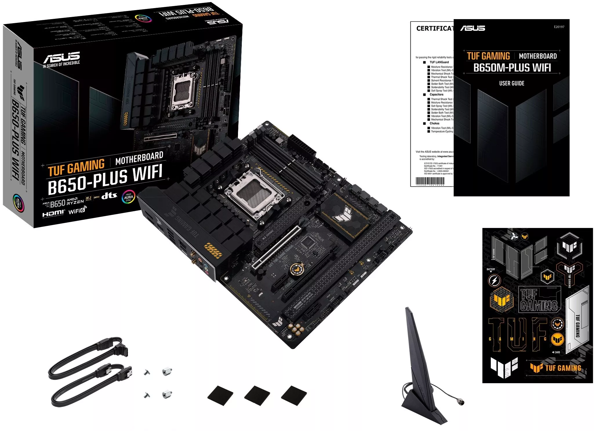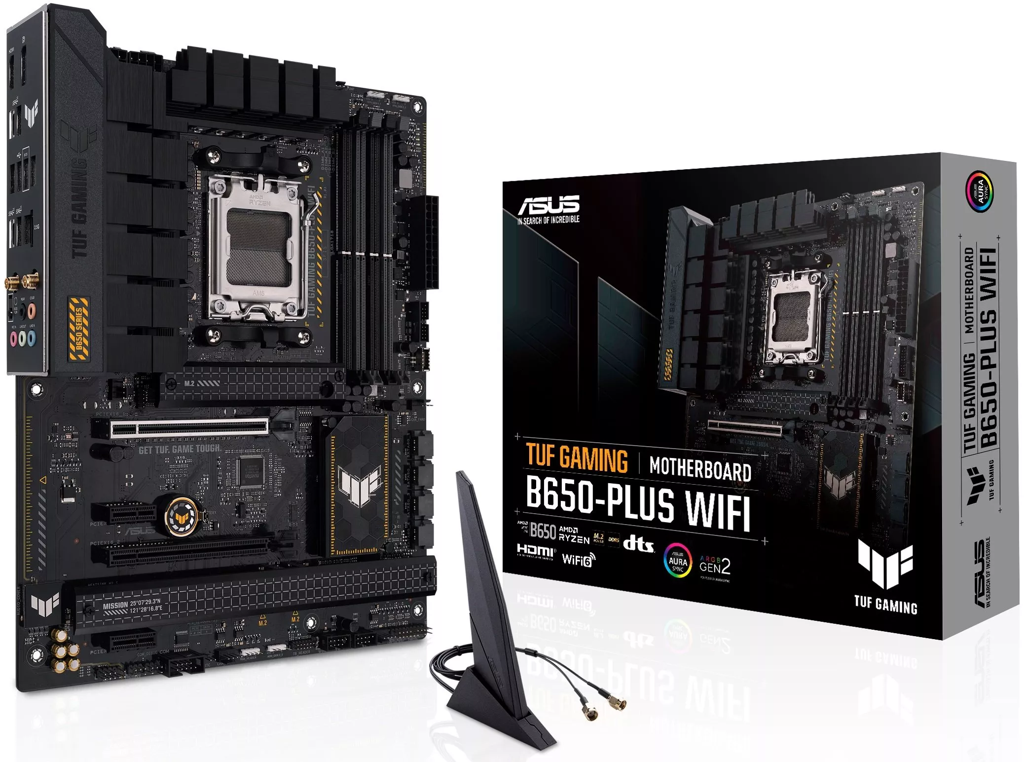 Материнская плата ASUS TUF GAMING B650-PLUS WIFI раскрывает все основные возможности новейшей платформы AMD Ryzen 7000, дополняя их эксклюзивными геймерскими функциями и надежностью, проверенной временем. Отборная элементная база, усовершенствованная система питания и совместимость с различными системами охлаждения – это материнская плата предоставляет все для того, чтобы получить гарантированное и максимальное быстродействие в играх. Материнские платы TUF GAMING проходят тщательные испытания, чтобы гарантировать надежную работу в разных условиях.