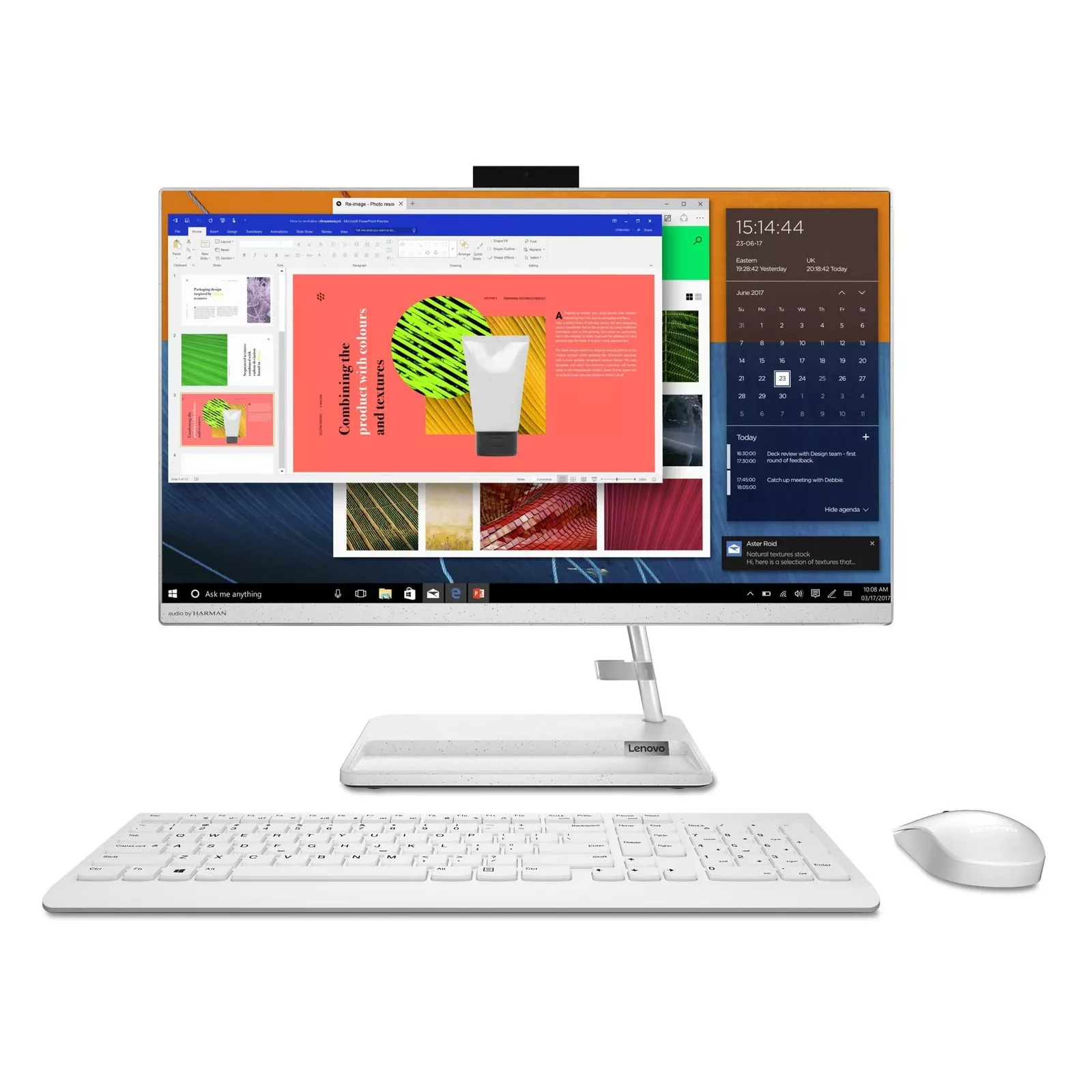 < У яркого IPS-экрана диагональю 23,8 дюйма удобно собираться всей семьей на просмотр фильмов и телешоу. Наслаждайся четким и контрастным изображением в разрешении Full HD на дисплее Lenovo IdeaCentre AIO 3 24ALC6 White с почти незаметными боковыми сторонами рамки.Мультизадачность тебе по плечу
