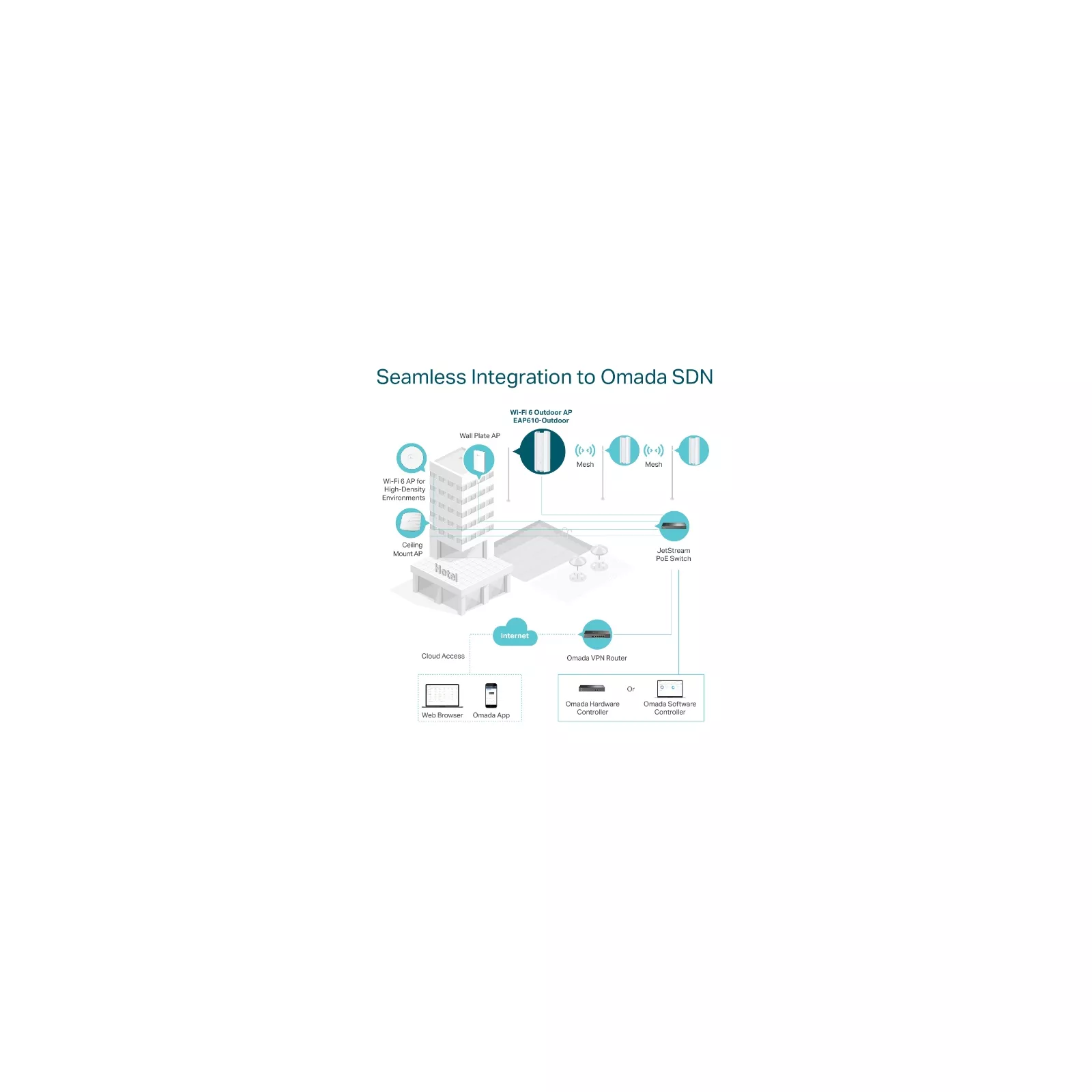 Программно-конфигурированная сеть Omada SDN включает сетевые устройства, такие как точки доступа, коммутаторы и шлюзы, обеспечивая стопроцентное облачное управление и формируя масштабируемую сеть с управлением из единого интерфейса.