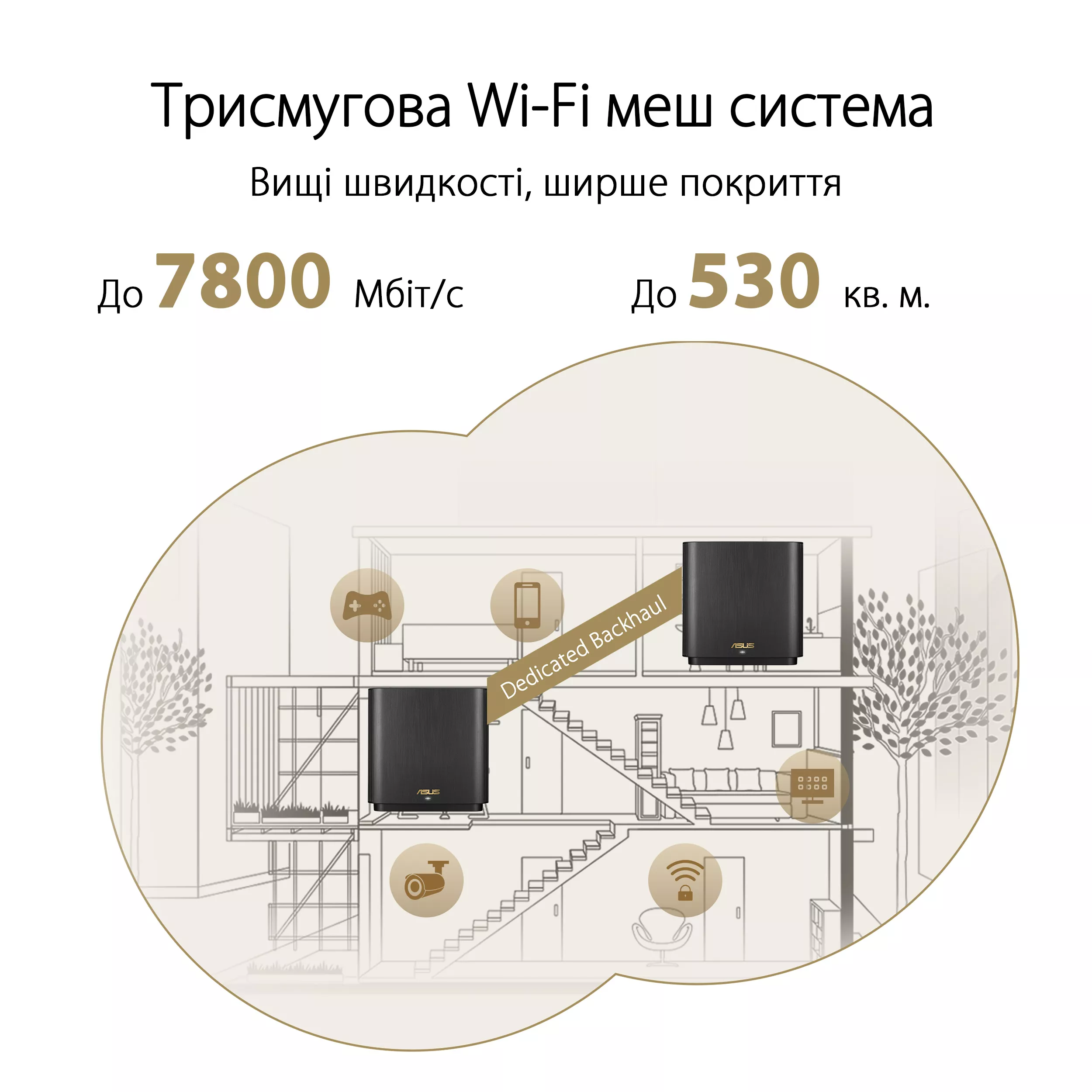 >Под' соединение узлов системы ZenWiFi XT9 осуществляется либо по Ethernet-кабелю, либо по беспроводному диапазону 5 ГГц. Причем оптимальный тип подключения может выбираться автоматически.