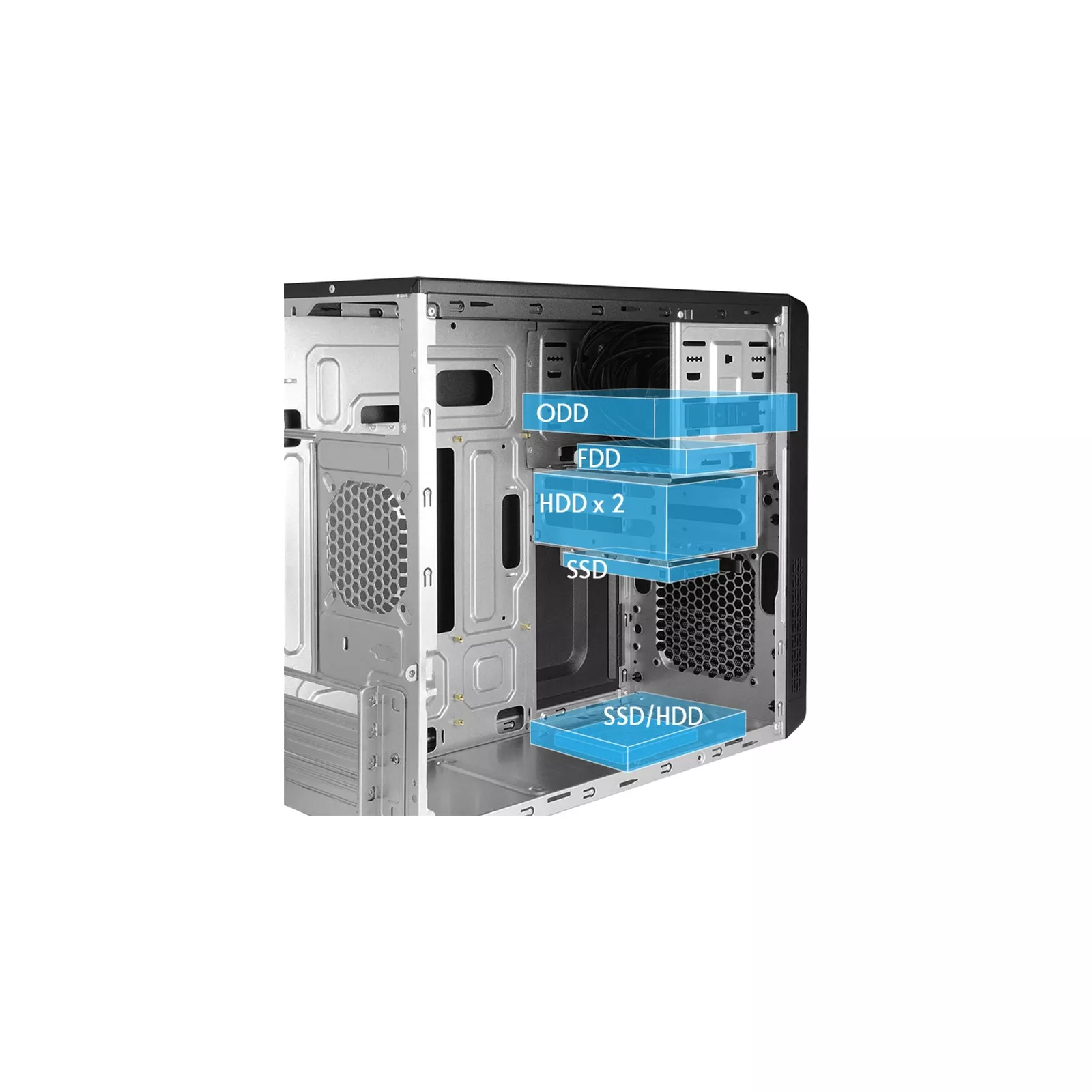 UB-03B-350GPB — это гибкий корпус в корпусе mini-tower, сочетающий в себе практичность и лаконичный дизайн с очень конкурентоспособной ценой. Он идеально подходит для дома или офиса и имеет все современные функции, от USB Type-C до предварительно установленного устройства чтения SD-карт, а также поддерживает установку дополнительного 120-мм вентилятора спереди и 80-мм дополнительного вентилятора сзади.