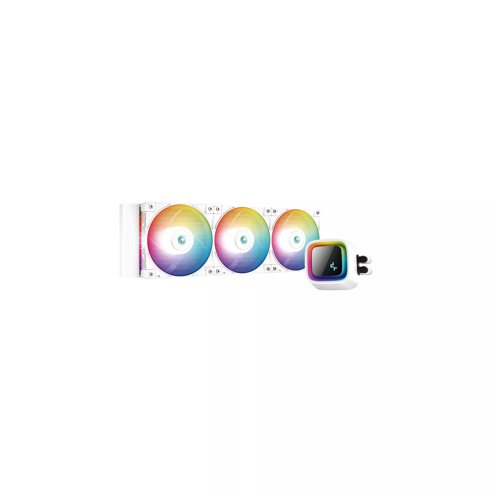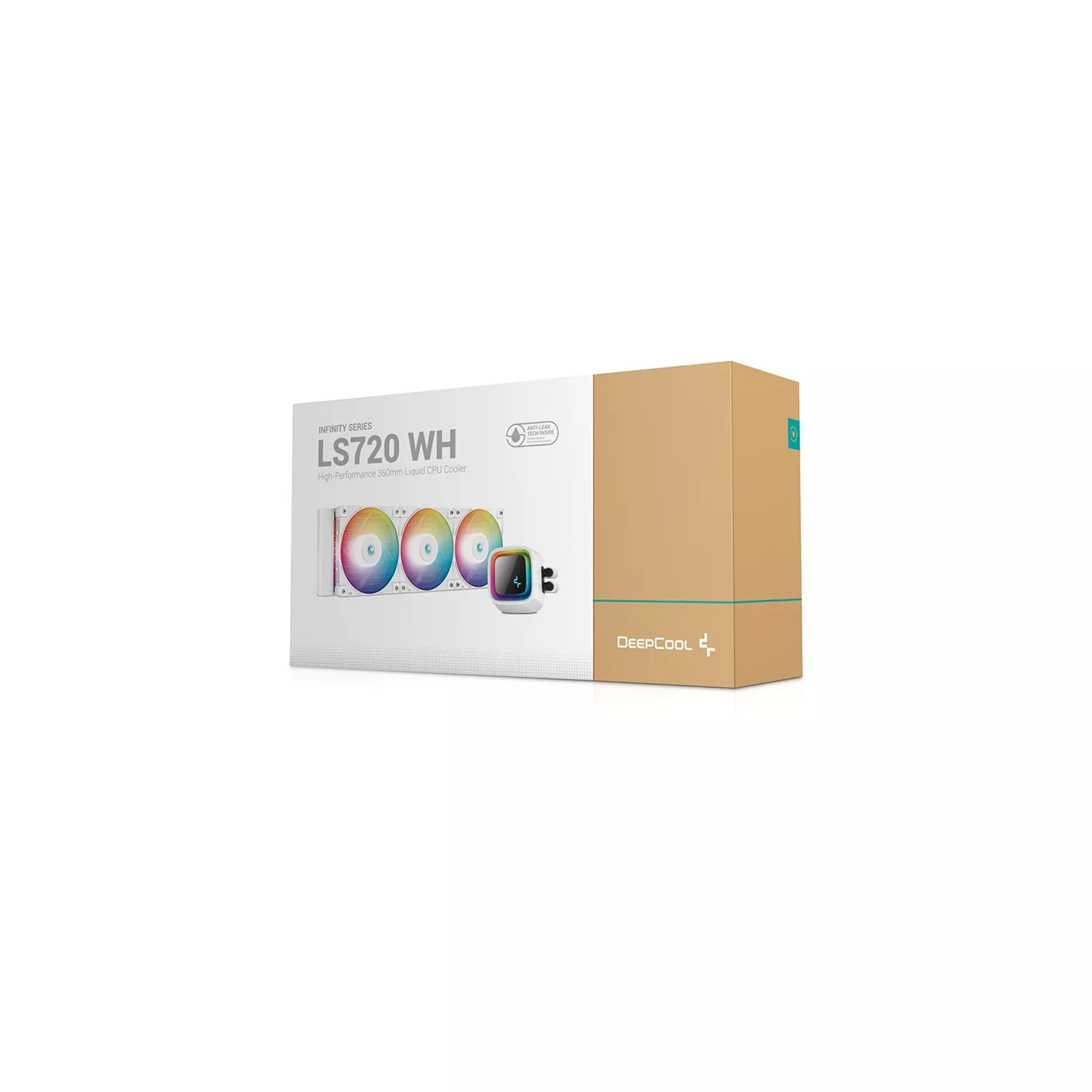 Deepcool LS720 — жидкостный процессорный кулер премиумкласс обеспечивает максимальную эффективность охлаждения и низкий уровень шума благодаря радиатору диаметром 360 мм. , трем вентиляторам FC120 A-RGB PWM и зеркальной крышке.
