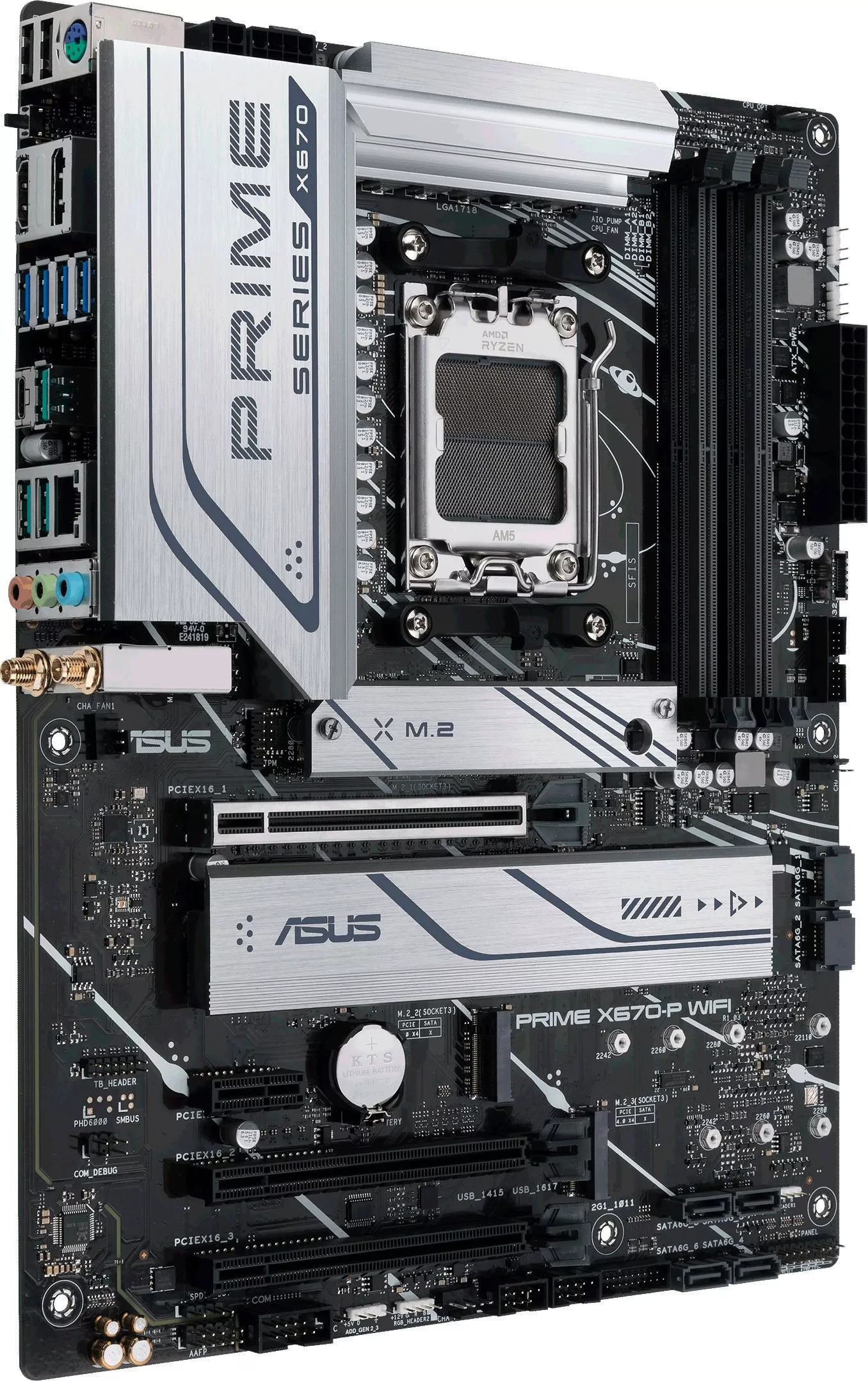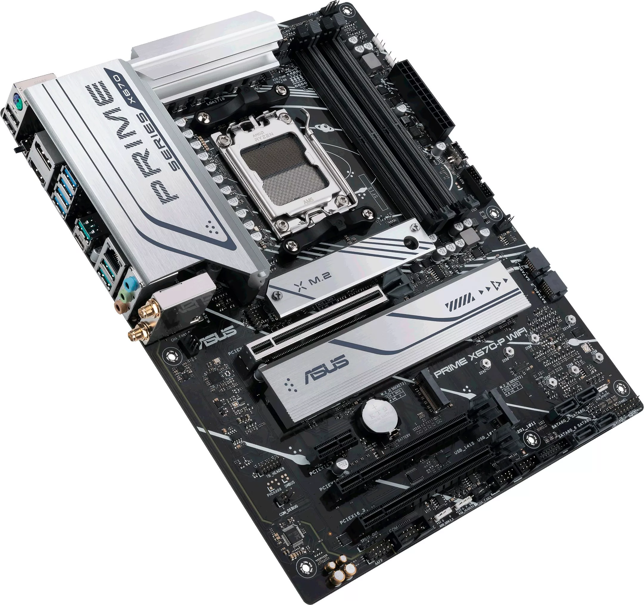 PRIME X670-P WIFI оснащена сразу тремя разъемами M.2, один из которых имеет интерфейс PCIe 5.0, обеспечивающий скорость передачи данных до 128 Гбит/с. Он идеально подходит для подключения высокоскоростного твердотельного накопителя, который позволяет значительно ускорить стартовую загрузку операционной системы и запуск программ.  Платы серии Prime X670 оборудованы слотом PCIe 4.0 для установки новейших видеокарт. Высокая пропускная способность нового интерфейса отвечает требованиям функциональных систем, которые легко справятся с высокими нагрузками. Многочисленные USB-порты, среди которых разъем стандарта USB Type-C® (до 20 Гбит/с) на задней панели, предназначенные для подключения различных периферийных устройств. Полный комплект USB-портов, среди которых разъем стандарта USB 3.2 Gen 1 Type-C® для передней панели, предназначенные для подключения различных периферийных устройств. Материнская плата PRIME X670 поддерживает стандарт USB4® с помощью разъема Thunderbolt (USB4). С помощью карты расширения ASUS пользователь сможет использовать этот современный интерфейс с пропускной способностью 40 Гбит/с для подключения высокоскоростной периферии и скоростной зарядки устройств. Кроме того, эта карта поддерживает последовательное (daisy-chain) подключение нескольких мониторов, а также вывод изображения на два монитора с разрешением 4K. < strong>Wi-Fi 6 Материнская плата оснащается контроллером, который соответствует стандарту Wi-Fi 6 (802.11ax) и имеет максимальную теоретическую скорость передачи данных на уровне 1.2 Гбит/с. Контроллер оптимизирован под эффективную работу в условиях загруженных сетей, когда большое количество клиентских устройств делят между собой общий канал. Сетевой контроллер Realtek стандарта 2.5G Ethernet обеспечивает высокую скорость обработки пакетов TCP и UDP и снижает нагрузку на центральный процессор. Инженеры ASUS уделяют особенное внимание деталям, влияющим на комфорт пользователя, поэтому для обеспечения качественного звука в платах серии PRIME X670 применяется эксклюзивный аудиокодек с гибкими настройками, а визуальные эффекты RGB-подсветки легко персонализировать. За счет использования высококачественных компонентов и продуманной конструкции аудиоподсистема платы может похвастать отличным качеством звучания. Обеспечивает качественную изоляцию аналоговой и цифровой частей для снижения уровня взаимных помех. Для повышения качества аудиосигнала левый и правый каналы расположены на разных слоях печатной платы. Конденсаторы от известных японских производителей способствуют наивысшему качеству звука. span> Эксклюзивность системы, созданной для энтузиастов, подчеркнет встроенная система подсветки ASUS Aura. Кроме того, к материнской плате можно подключать стандартные светодиодные ленты, для чего она оснащена отдельными разъемами. Система подсветки может работать в нескольких режимах и синхронизироваться с другими устройствами, поддерживающими технологию Aura. Три разъема для адресованных RGB-светодиодных лент 2-го поколения, которые используются на материнской плате, поддерживают определение количество светодиодов на лентах второго поколения, что позволяет программному обеспечению автоматически настраивать световые эффекты для конкретных устройств. Новые разъемы также обеспечивают обратную совместимость с имеющимися устройствами, поддерживающими подсветку Aura. В
