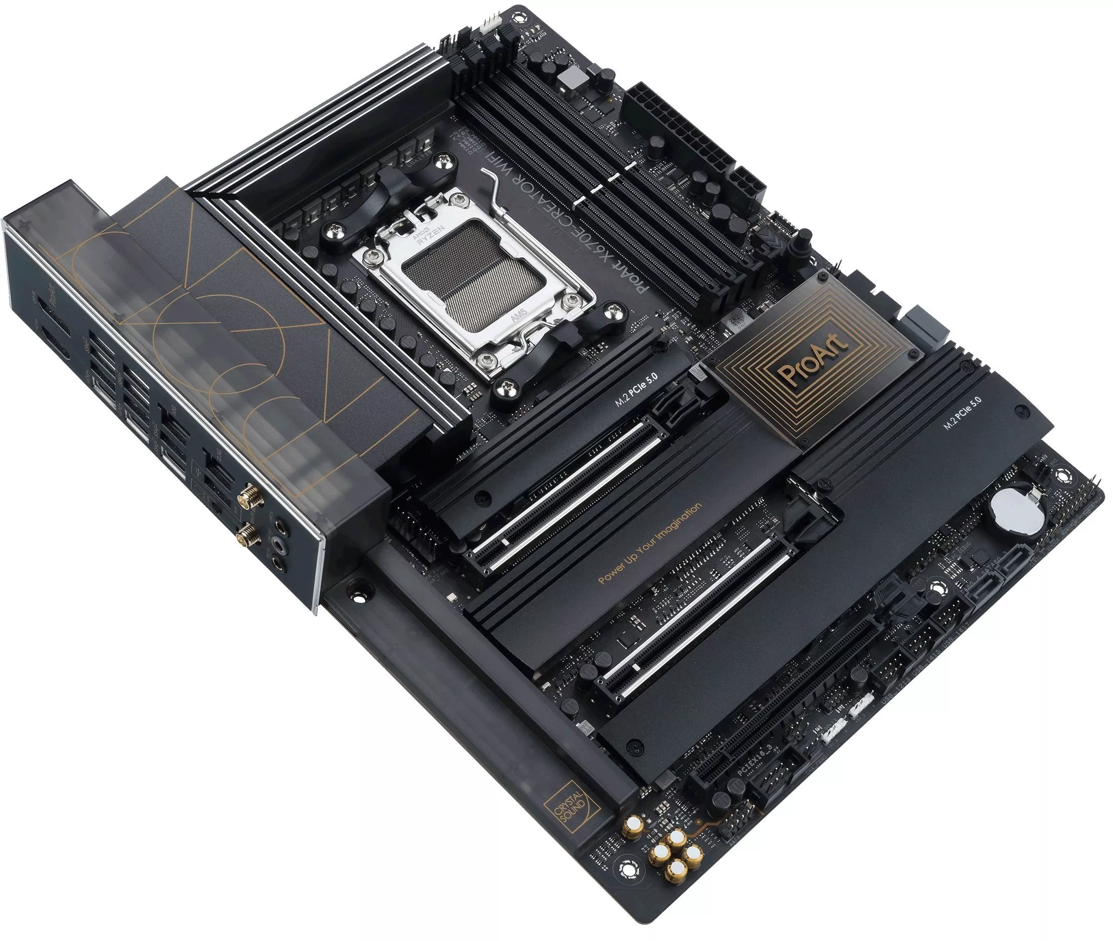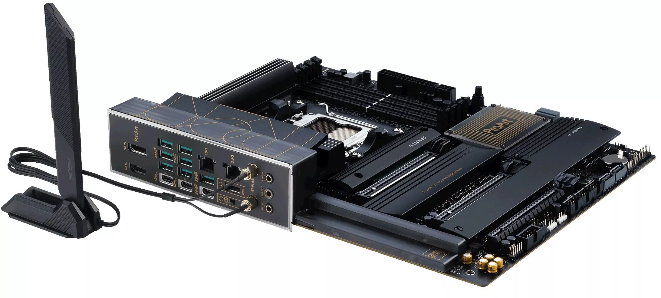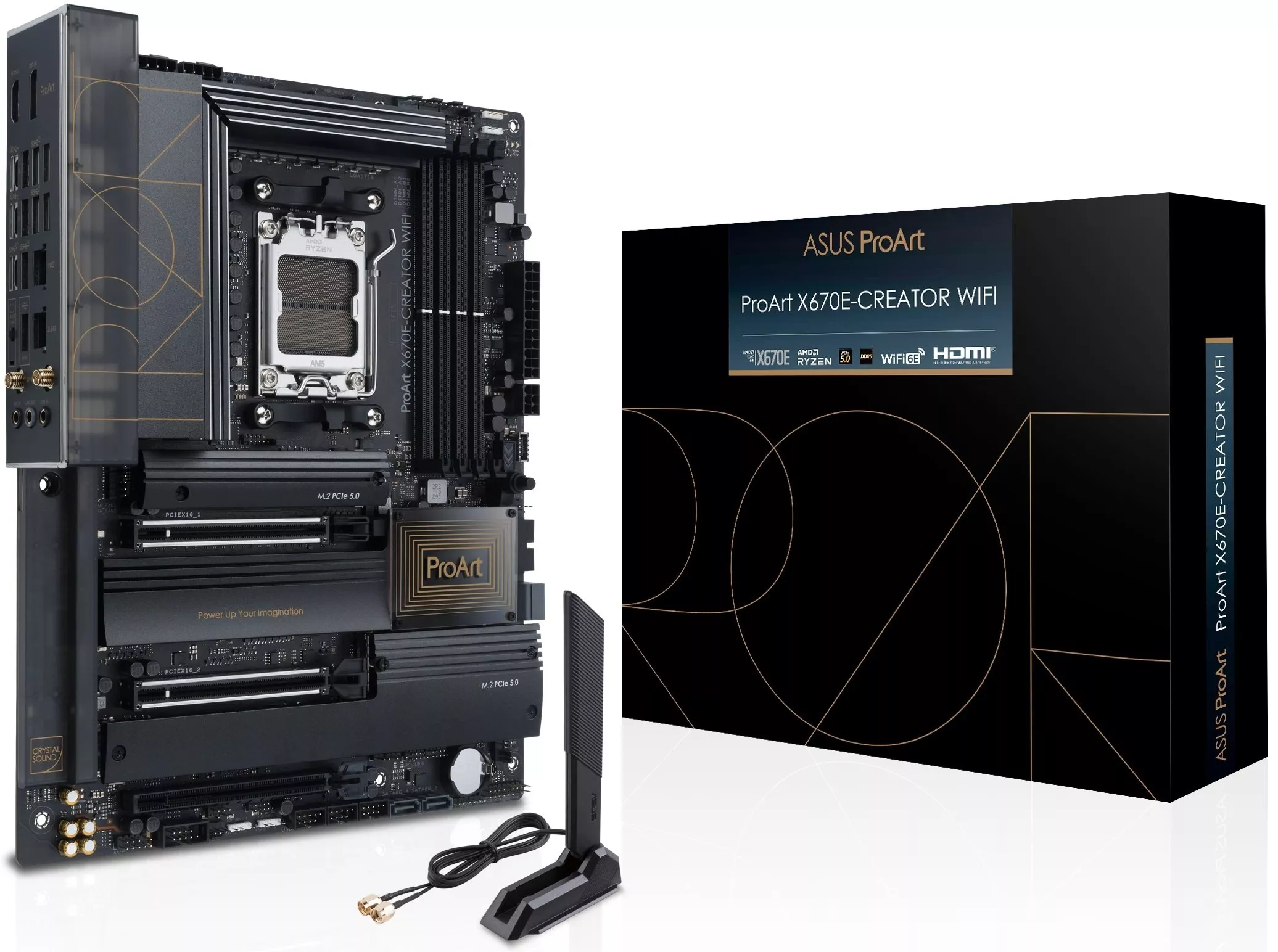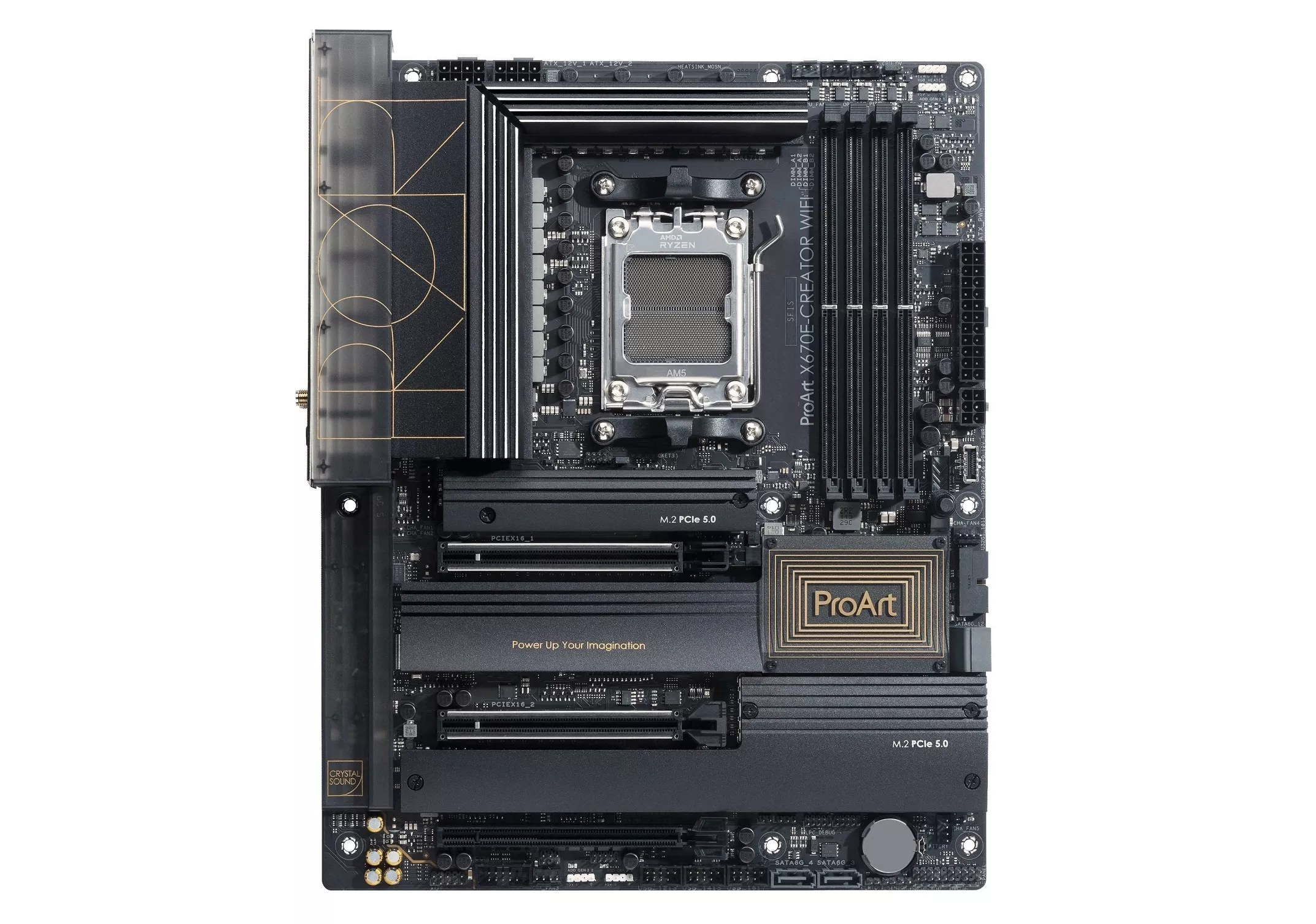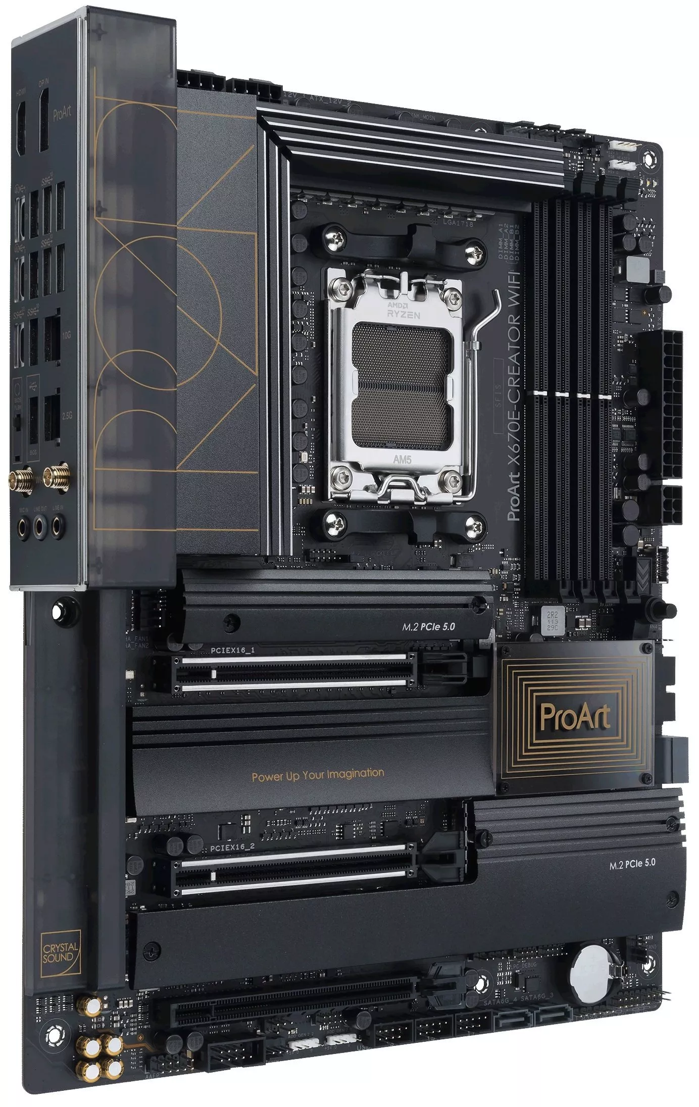 Встроенный модуль стандарта Wi-Fi 6E использует преимущества нового диапазона частот в 6 ГГц, что позволяет передавать данные втрое быстрее, чем в диапазоне 5 ГГц, и до семи каналов 160 МГц, обеспечивающих сверхвысокую скорость беспроводной передачи данных, улучшенную пропускную способность и надежную работу в условиях большого количества одновременно подключенных клиентов.< /span> Два порта Ethernet этой платы обеспечивают одновременную передачу данных на скорости 2,5 Гбит/с и 10 Гбит/с соответственно для скоростной загрузки данных, потоковых трансляций и реализации NAS-хранилищ с улучшенной организацией хранения данных и повышенной безопасностью. Плата ProArt X670E-Creator WiFi предлагает широкую поддержку этого нового стандарта, обеспечивая пропускную способность, необходимую для подключения самых быстрых твердотельных накопителей и видеокарт. ProArt X670E-Creator WiFi оснащен четырьмя встроенными слотами M.2, два из которых поддерживают стандарт PCIe 5.0 и обеспечивают невероятную скорость обмена данными до 16 ГБ/с, а остальные работают со скоростью до 8 ГБ/с благодаря поддержке интерфейса PCIe 4.0. Оба слота расширения PCIe 5.0 x16 обеспечивают для совместимых устройств невероятную пропускную способность – 64 ГБ/с. Чтобы выдержать вес массивных видеокарт, они укреплены крепежными элементами SafeSlot, а для легкого высвобождения видеокарты предлагается кнопка Q-Release. Разъем USB 3.2 Gen 2x2 обеспечивает скорость передачи данных до 20 Гбит/с. Он также поддерживает технологию Quick Charge 4+, которая позволяет быстро заряжать устройства с мощностью до 60 Вт с помощью дополнительного кабеля питания PCIe, подключенного к расположенному рядом 6-контактному разъему. В системе питания на этой материнской применяются силовые модули, рассчитанные на ток до 70 А, каждый из которых состоит из драйвера, а также MOSFET-ключей верхнего и нижнего плеч, для обеспечения эффективного электропитания современных процессоров AMD Ryzen 7000. Контроллер ASUS Digi+ обеспечивает высокую эффективность, надежность и стабильность питания по любых нагрузок. Специальные разъемы обеспечивают надежное подключение кабелей, идущих от блока питания, сниженное сопротивление и улучшенное рассеяние тепла. < span> В материнских платах ASUS применяются отборные дроссели из сплава и конденсаторы, которые способны работать дольше и за более сложных условий, чем стандартные компоненты. Настройка параметров стала быстрее и умнее, чем когда-либо. ASUS AI Overclocking предлагает профили процессора и системы охлаждения, чтобы настроить оптимальную конфигурацию и получить максимальную отдачу от каждой системы. Предлагаемые значения могут быть активированы автоматически или использованы в качестве стартовой площадки для дальнейших экспериментов. Выполнение задач, использующих небольшое количество потоков, способно значительно ускорить технология AMD Precision Boost Overdrive (PBO), но вот частоту всех ядер можно повысить с помощью традиционного разгона. Функция Dynamic OC Switcher позволяет динамически переключаться между двумя подходами к разгону на основе тока или температуры процессора. Функция Core Flex дает возможность заходить за установленные ограничения еще дальше, благодаря управлению параметрами питания и температуры новыми креативными способами. Например, вы можете позволить системе работать без ограничений во время интенсивных вычислений и установить 