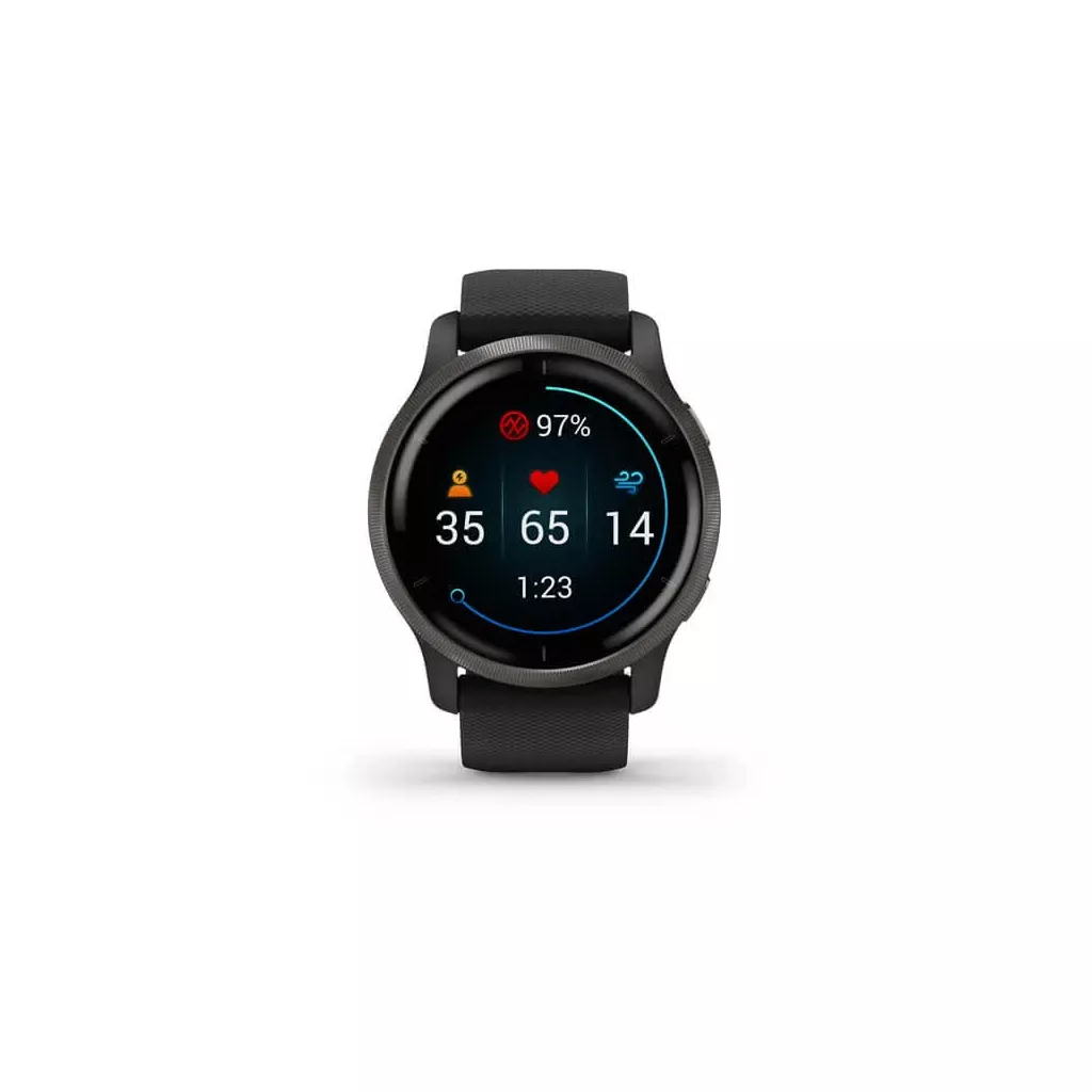 Красивый дисплей AMOLED обеспечивает отличное изображение даже при ярком солнечном свете. Попробуйте режим постоянно включенного дисплея, чтобы экран был виден в любое время. Выполните 2-минутную сессию для записи основной статистики, включая частоту пульса2, вариабельность частоты пульса, пульсоксиметрию3, дыхание и стресс. Затем составьте отчет с этими данными с помощью приложения Garmin Connect на совместимом смартфоне. Наблюдайте за вашими уровнями энергии в течение дня, чтобы определить лучшее время для занятий и отдыха.