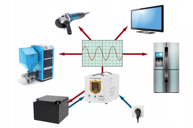 - инвертор генерирует чистое синусоидальное напряжение на выходе, что позволяет работать практически с любым типом нагрузки;