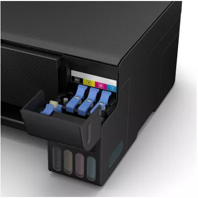 Этот принтер EcoTank обеспечивает значительную экономию расхода на печать, ведь в комплект поставки входит запас чернил на период до 3 лет. Комплект сменных контейнеров обеспечивает печать до 4500 черно-белых или 7500 цветных страниц.