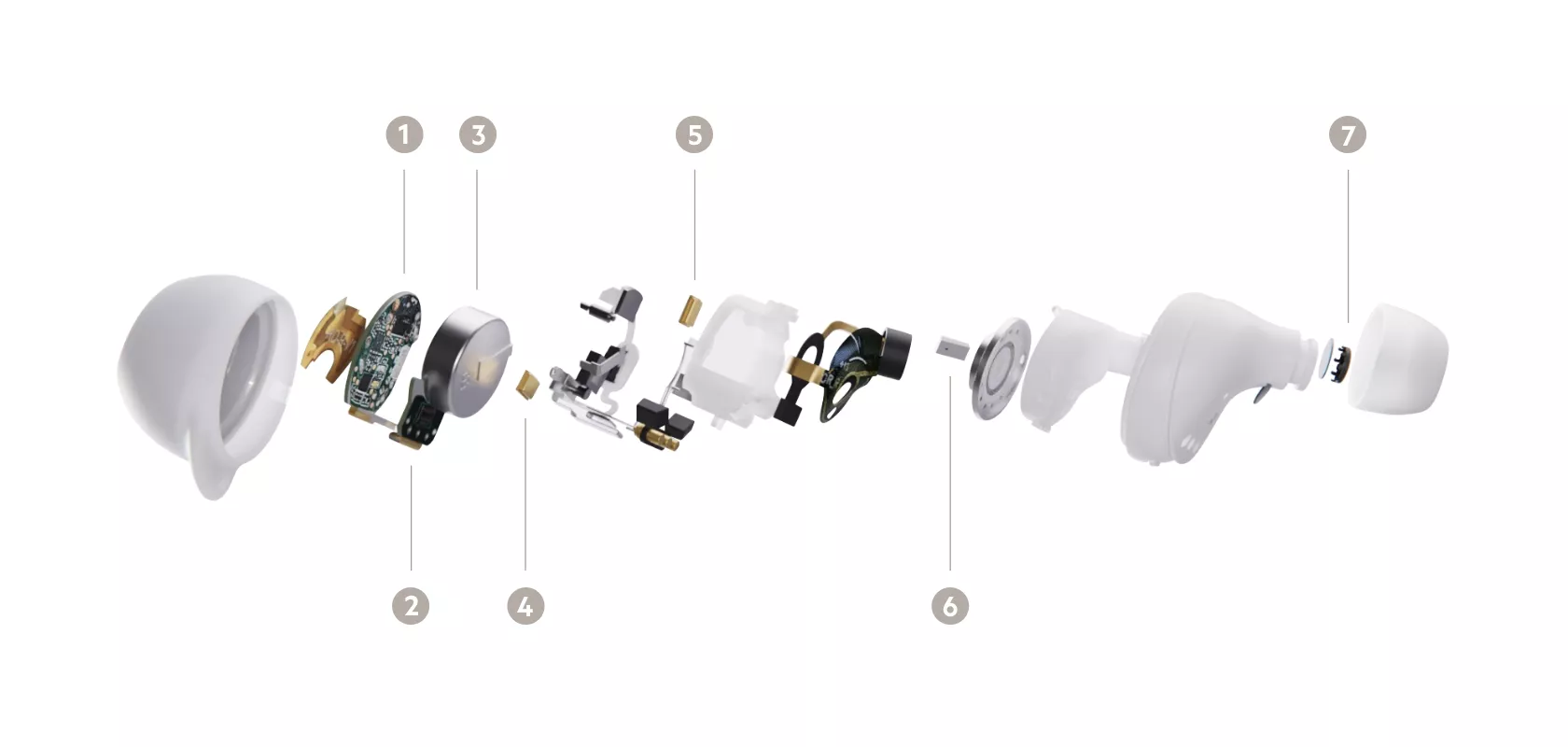 Три микрофона (два внешних и один внутренний) в каждом наушнике улавливают окружающий шум и подавляют его для более четкого звонка, устраняют шум и отвлекающие факторы и обеспечивают идеальное качество прослушивания.