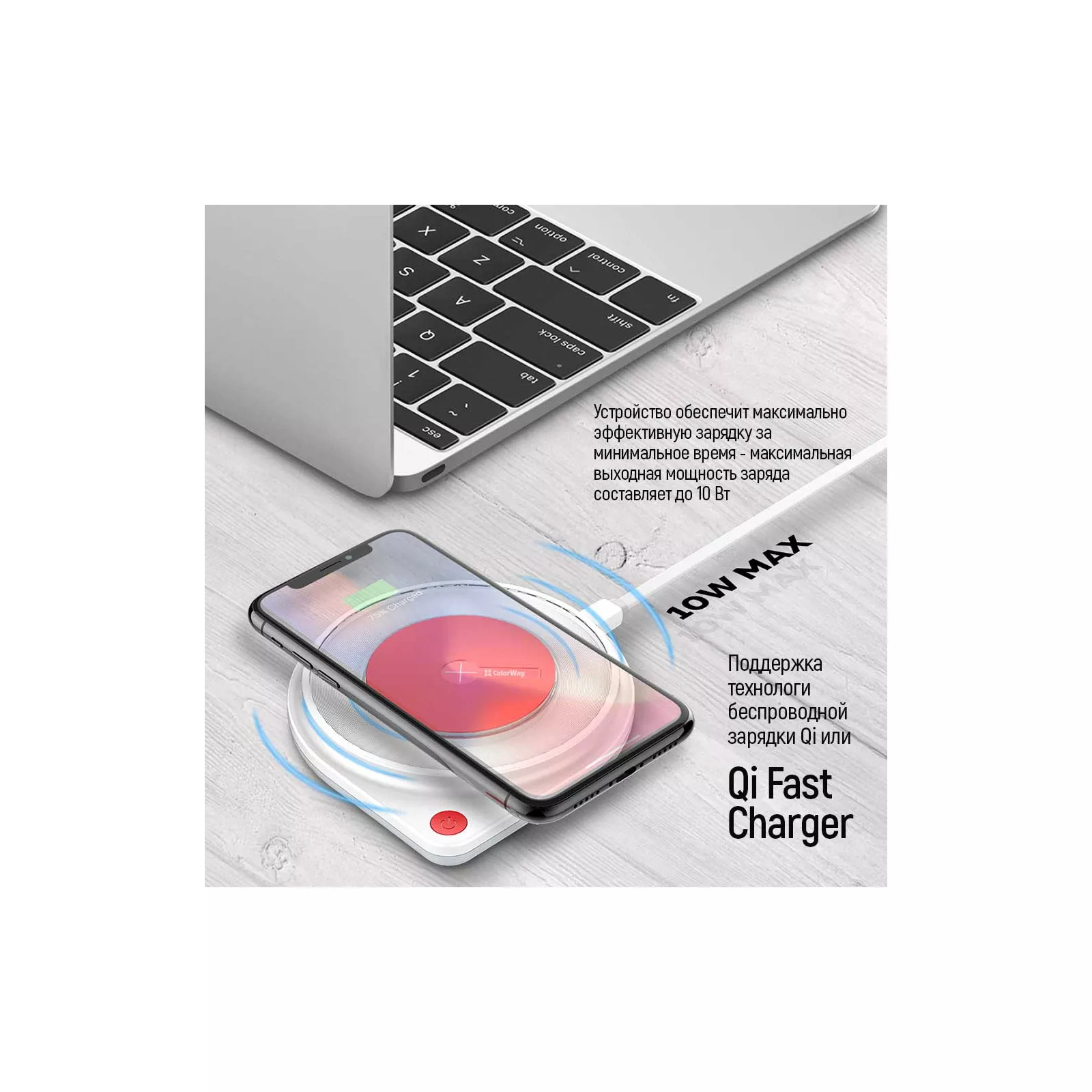 Беспроводное зарядное устройство ColorWay Qi Fast Charger с LED-ночником Предназначен для быстрой зарядки смартфонов, использующих технологию беспроводной зарядки Qi или Qi Fast Charger. Встроенная светодиодная подсветка позволяет использовать устройство в качестве ночника. Интеллектуальная микросхема для безопасного использования: автовыключение для защиты аккумулятора смартфона, защита от перенапряжения, короткого замыкания, перегрева.