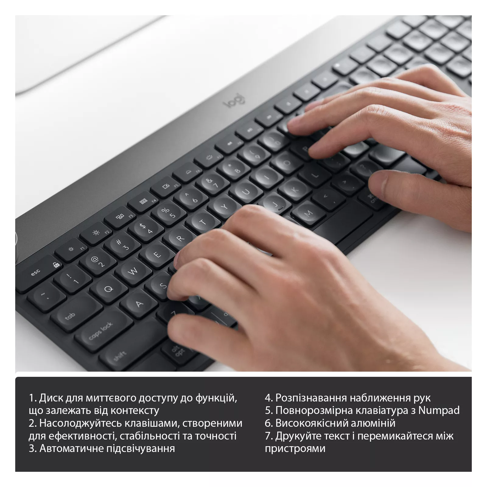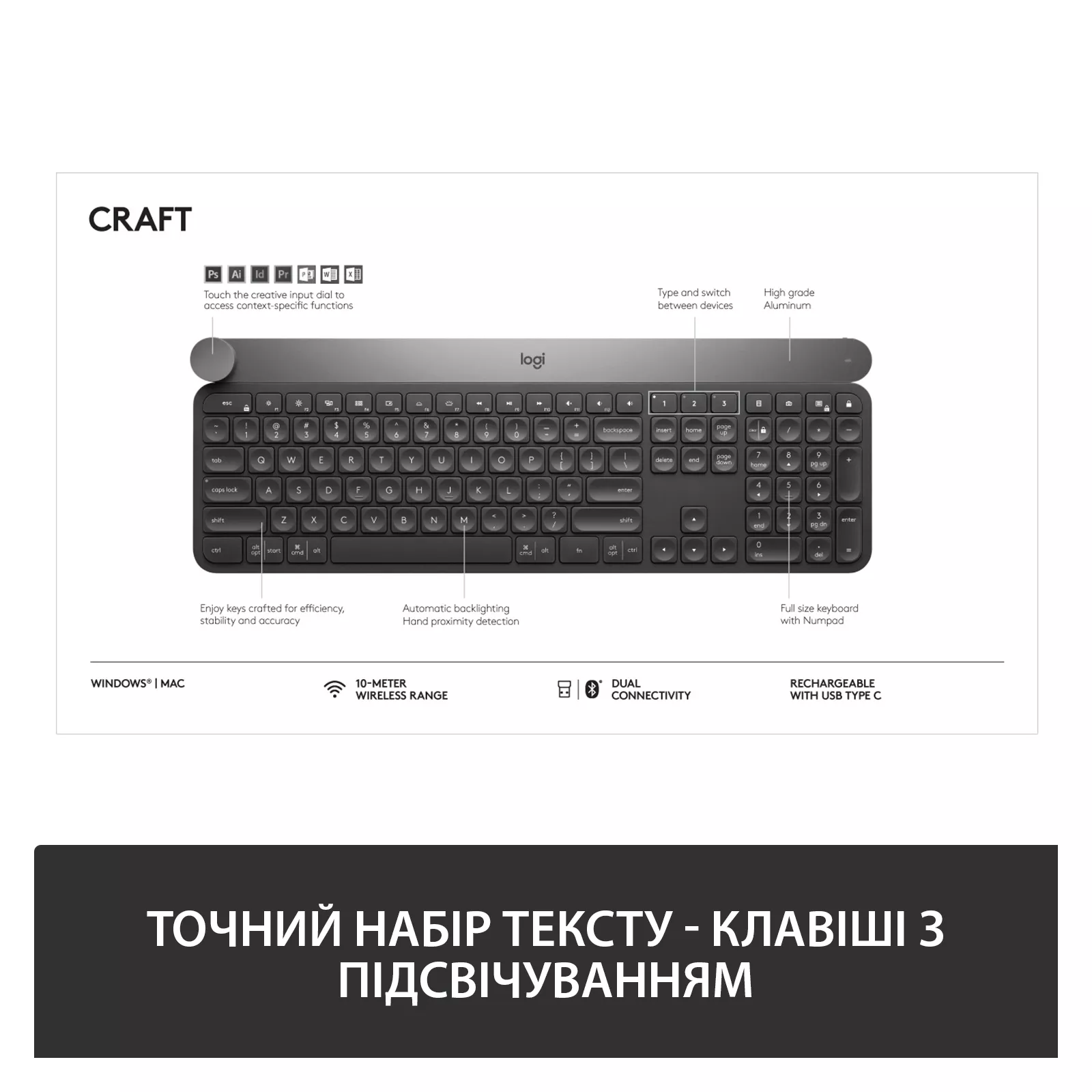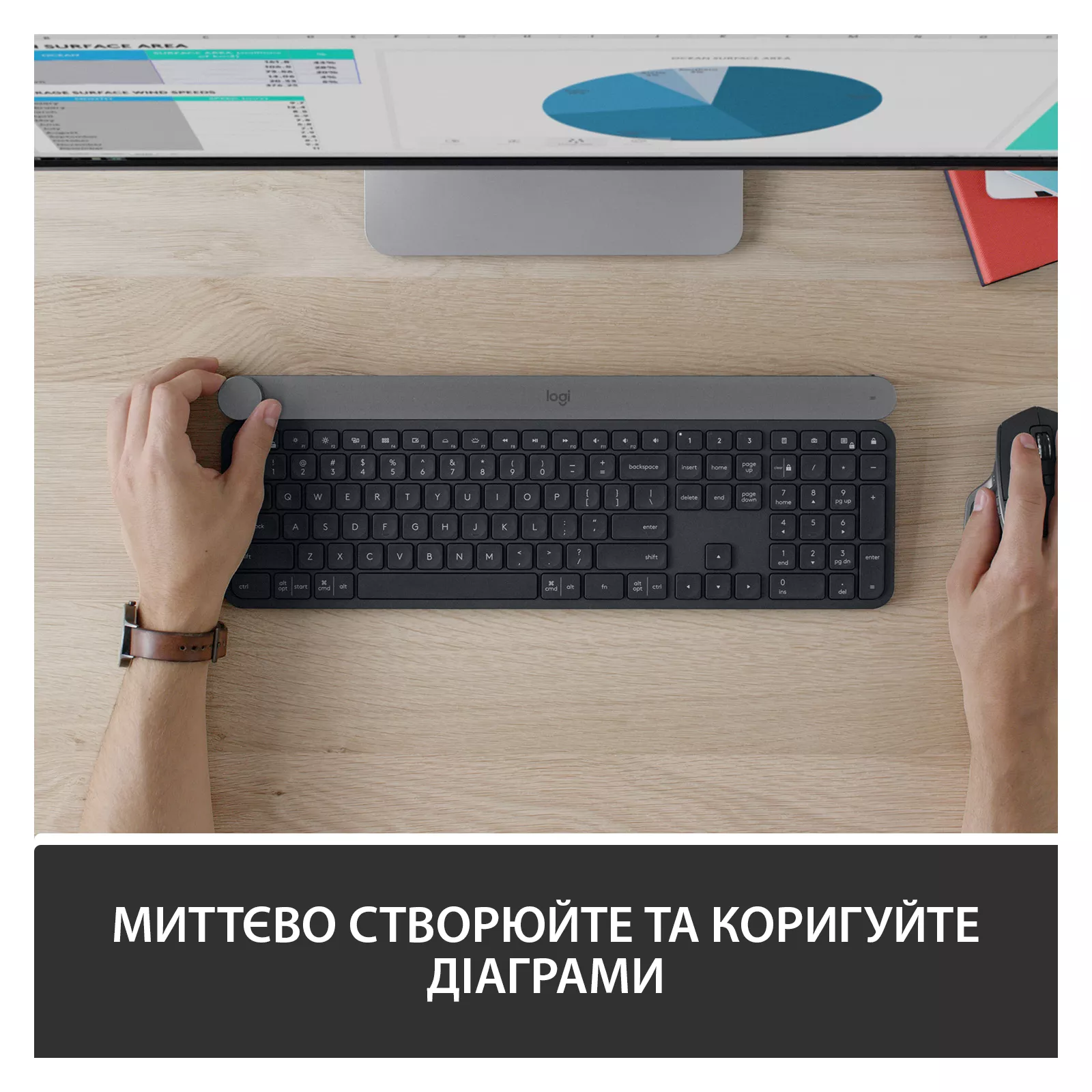 Logitech Craft — это беспроводная клавиатура с оптимизированной конструкцией и универсальным диском управления, который адаптируется к запущенному в этот момент с приложением, обеспечивая удобный контроль и полную свободу творчества. Диск управления адаптируется к используемому приложению и обеспечивает мгновенный доступ к нужным функциям. Благодаря сенсорному управлению вы сможете посвятить себя творчеству или эффективнее справиться с рабочими нагрузками.