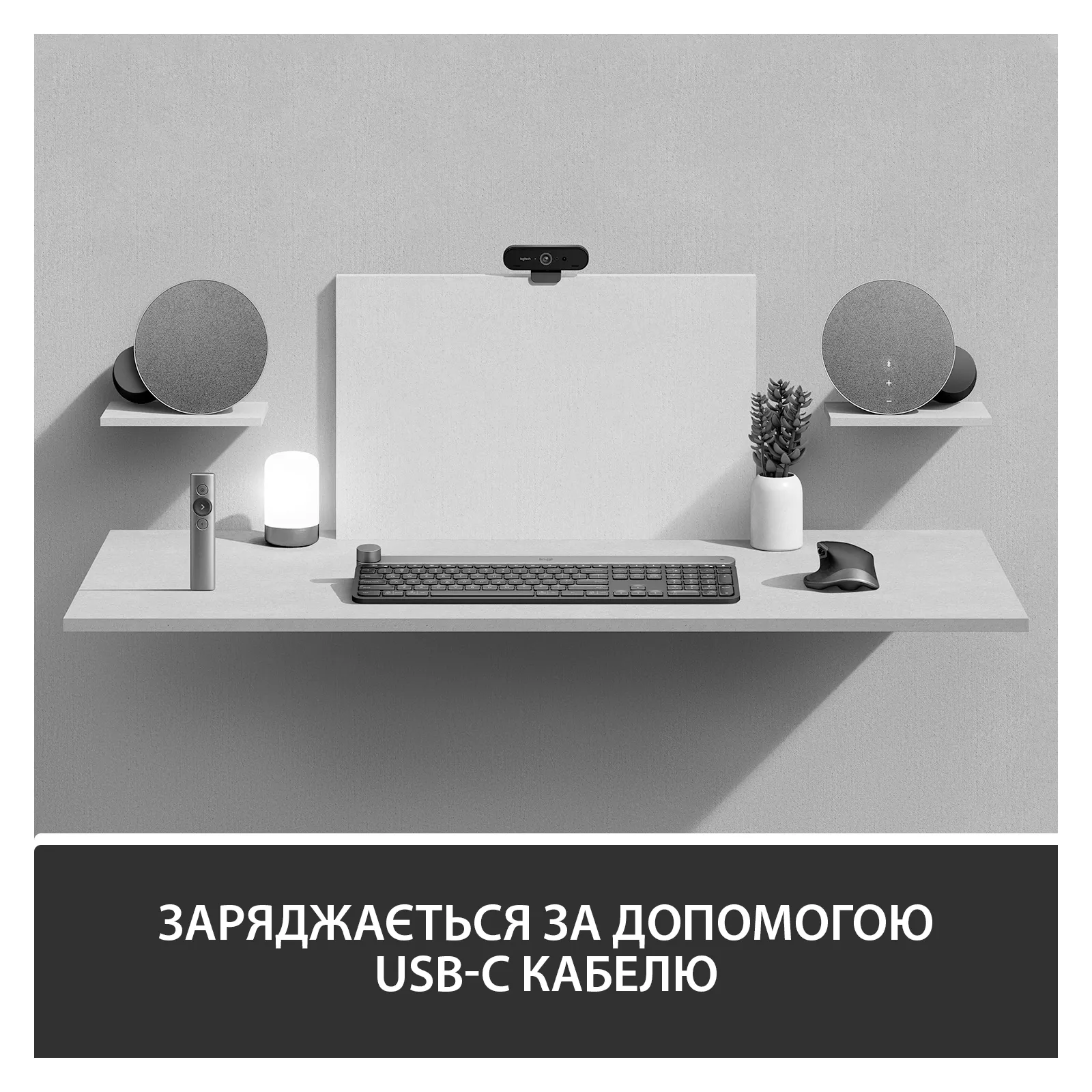 Никаких проводов. Никаких отвлекающих факторов. Клавиатура никогда не подведет вас, заставляя бросаться на поиски батареи или решать проблемы с подключением. Заряда батареи клавиатуры Craft хватает на неделю (время работы зависит от интенсивности использования колесика-переключателя и/или подсветки). Когда необходимо перезарядить батарею, индикатор ее состояния на клавиатуре Craft загорается красным. Для подзарядки устройства используйте кабель USB-C. Подключайте клавиатуру Craft через беспроводное соединение через приемник Logitech Unifying или по технологии Bluetooth LE.