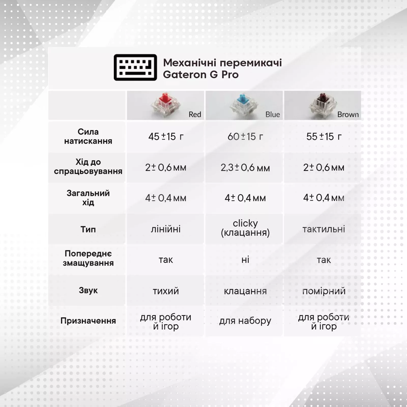 | Переключатели (Switches) | Gateron Red |