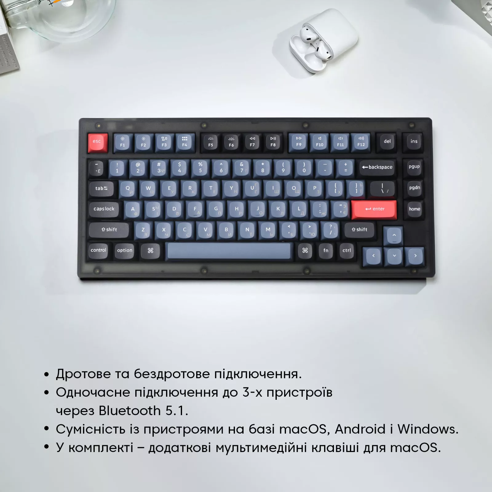 Особенности | для программиста, индикатор уровня заряда, С блокировкой клавиши Win, с памятью, с плоскими клавишами |
