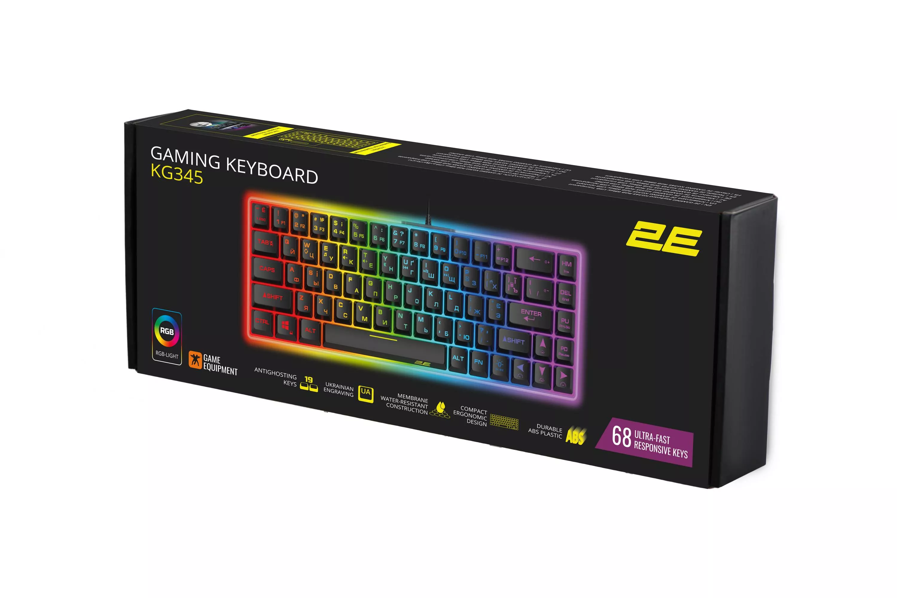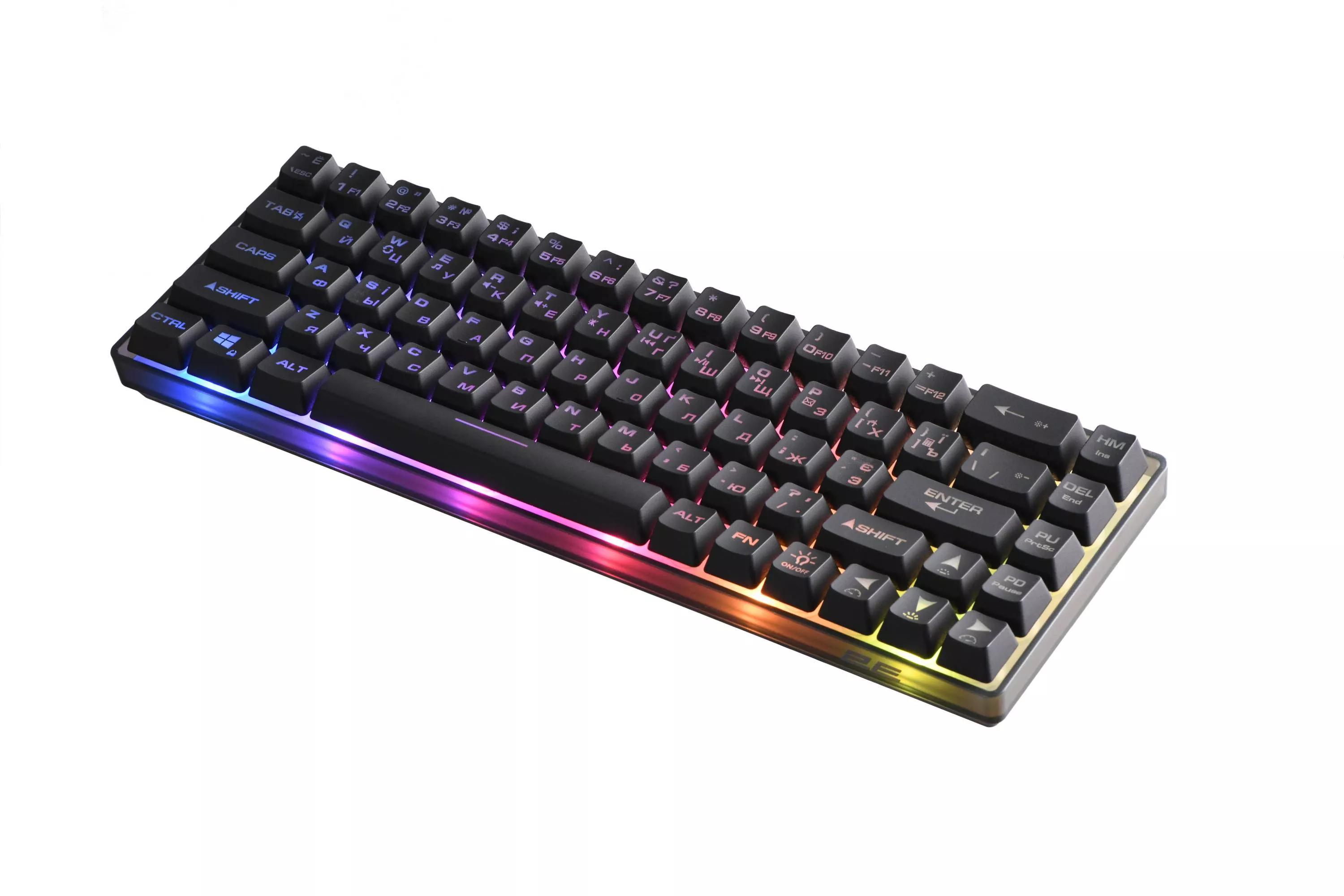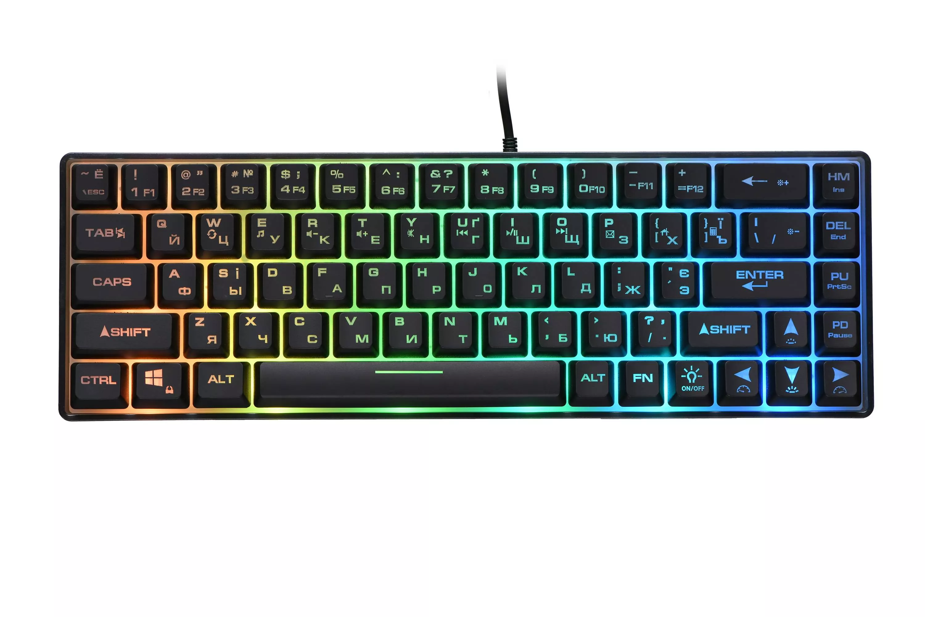 Мембранная клавиатура выполнена в популярном формате 65 % , имеет 68 клавиш с ресурсом 10 миллионов нажатий, которые мгновенно реагируют на действия пользователя, обеспечивая комфортную игру или набор текста. Модель отличается м’каким тайпингом, имеет украинскую раскладку. Вдобавок предусмотрена защита от влаги. Клавиатура совместима с устройствами, работающими на базе Windows 11 (и старшие версии), Linux, macOS.