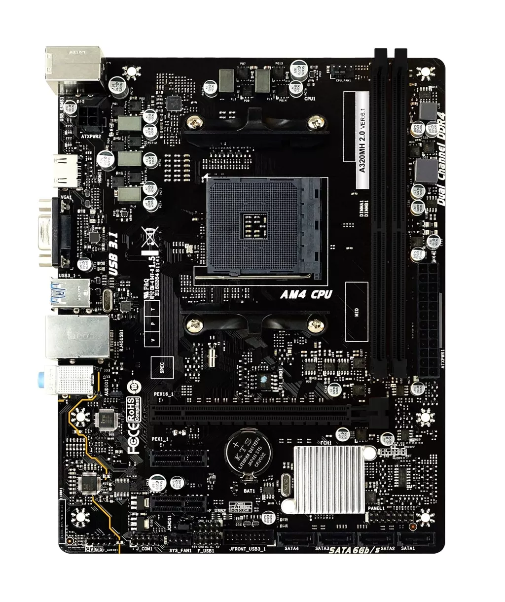 Чипсет AMD A320 обеспечивает простую и стабильную платформу, а также достаточно возможностей для подключения и широкополосной связи, чтобы удовлетворить требования как требовательных пользователей дома, так и любителей мультимедиа.