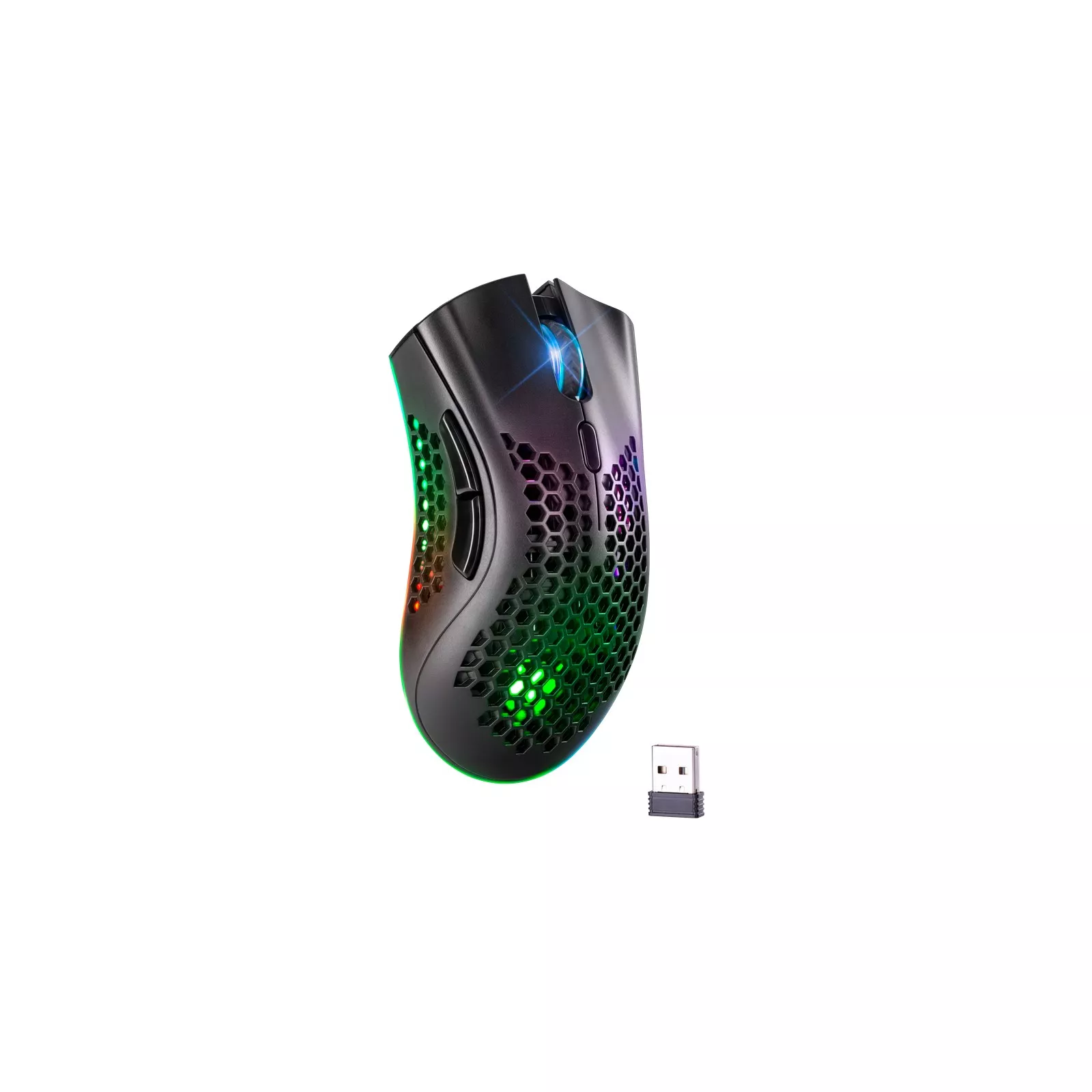 Беспроводная игровая мышь, легкий корпус удобной формы, RGB подсветка. Встроенный аккумулятор емкостью 400 мАч.