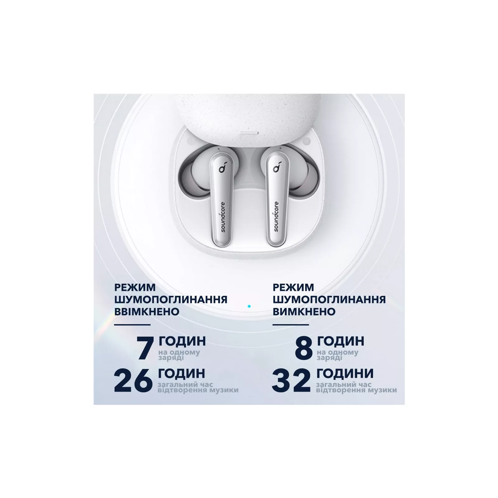 Полное сенсорное управление. Используйте наушники для управления музыкой, вызовами, активацией голосовых помощников или даже включением/выключением. Также есть возможность настроить сенсоры индивидуально с помощью фирменного приложения Soundcore. Приложение Soundcore также позволяет получить полный контроль над эквалайзером и предоставляет 22 предварительно установленных профиля. Слушайте до 8 часов без подзарядки или увеличьте до 32 с помощью зарядного кейса. Миниатюрный чехол для зарядки Liberty Air 2 Pro легко помещается практически в любом кармане или сумке.