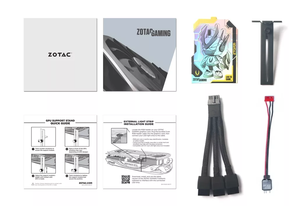 | Комплектация | инструкция; Подставка для GPU; 3x8-контактный кабель для 12VHPWR; 3-контактный разъемный кабель RGB |