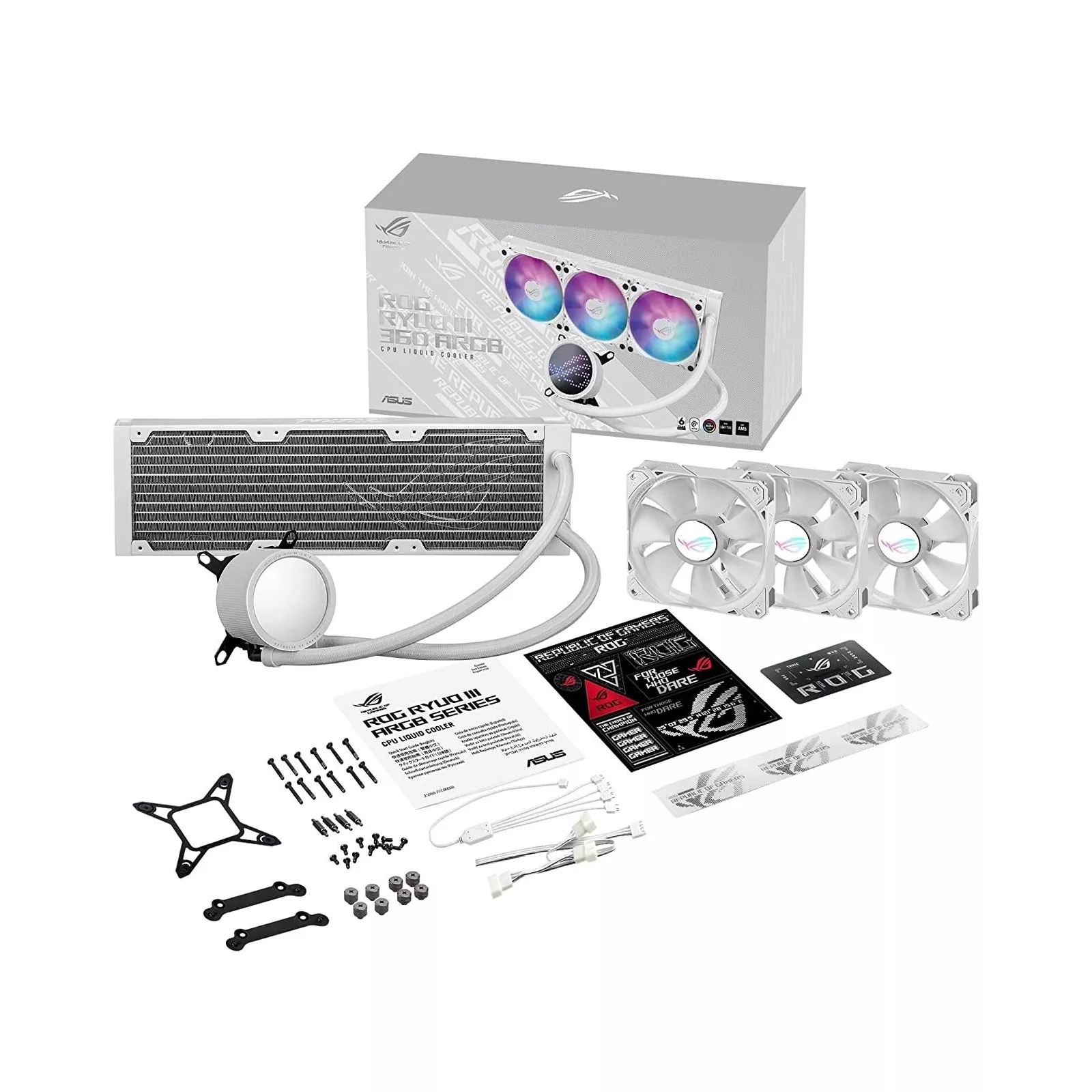 Asus ROG Ryuo III 360 ARGB — комплексная система водяного охлаждения процессора с яркой подсветкой ARGB. Предназначена для эффективного отвода тепла от компонента и обеспечения стабильной работы системы. Способна удовлетворить потребности продвинутых пользователей, нуждающихся в большей мощности охлаждения. Подходит для всех указанных сокетов.