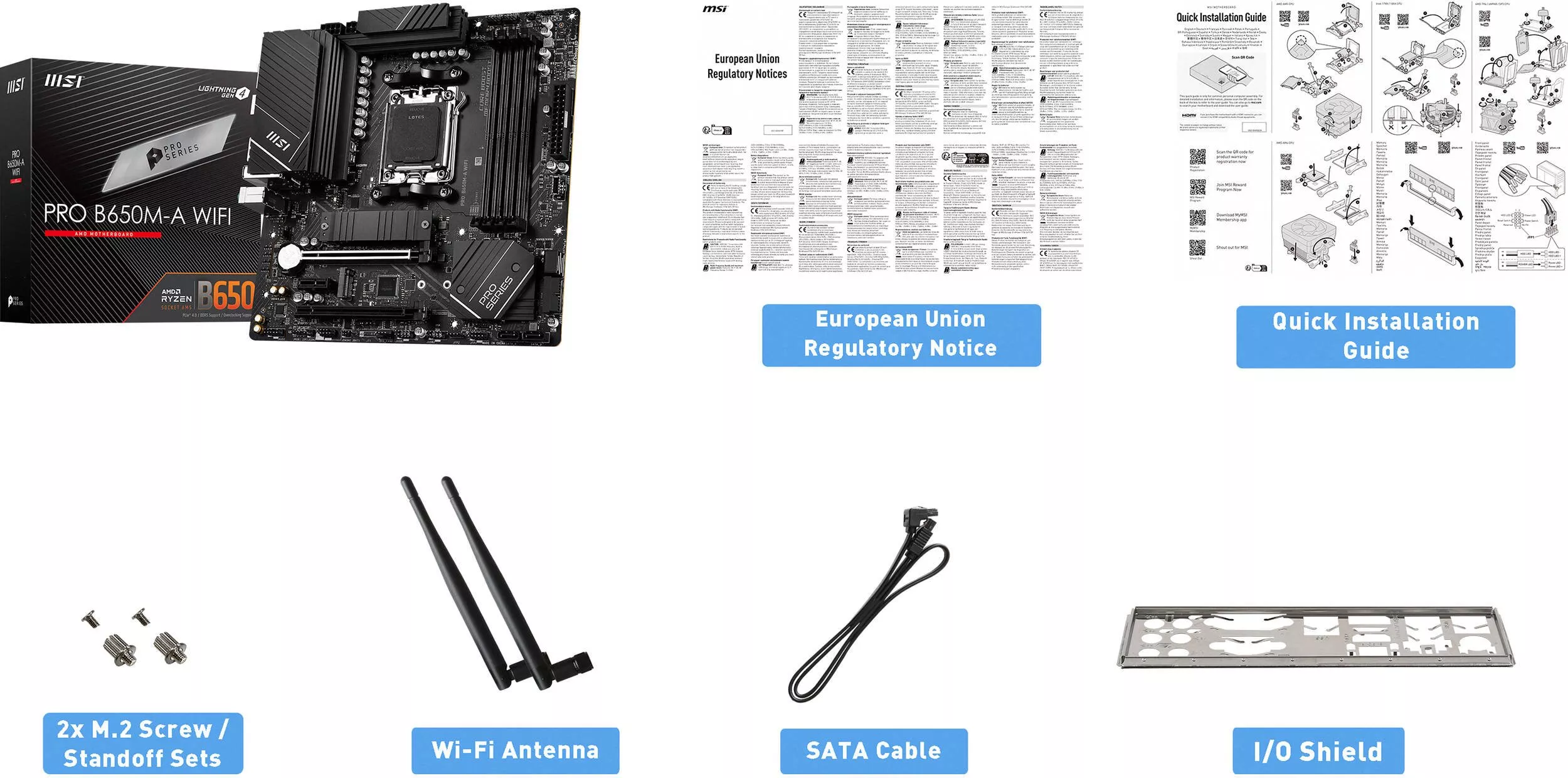 | Комплектация | SATA Cable; I/O Shield; Quick guide; M.2 Screw Package; User Manual; Wi-Fi Antenna |