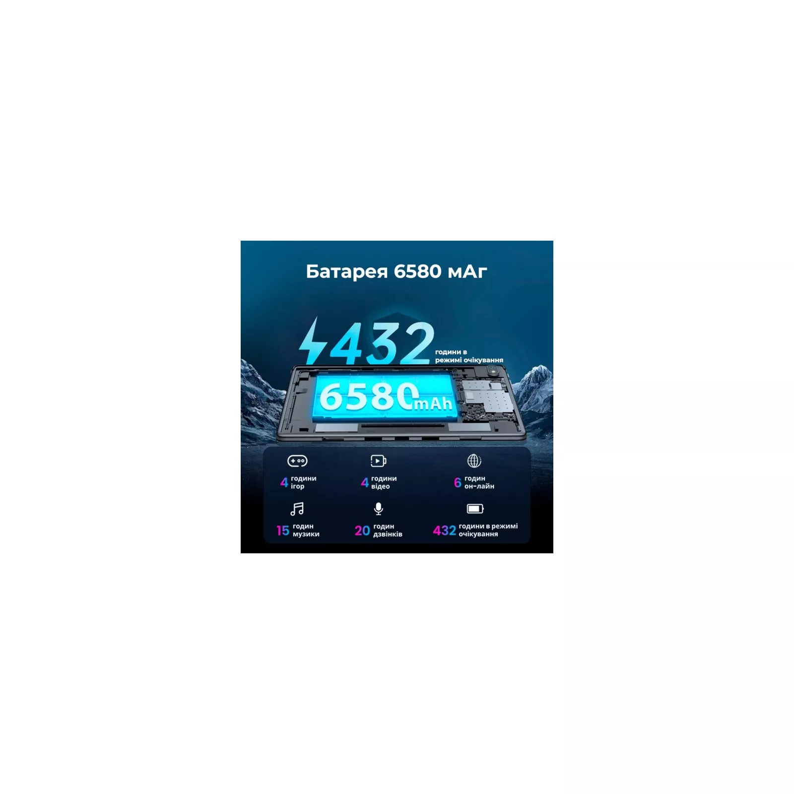 Аккумулятор на 6580 мАч обеспечивает долгую работу - целый день пребывания на природе, непрерывных игр или интенсивной офисной работы: