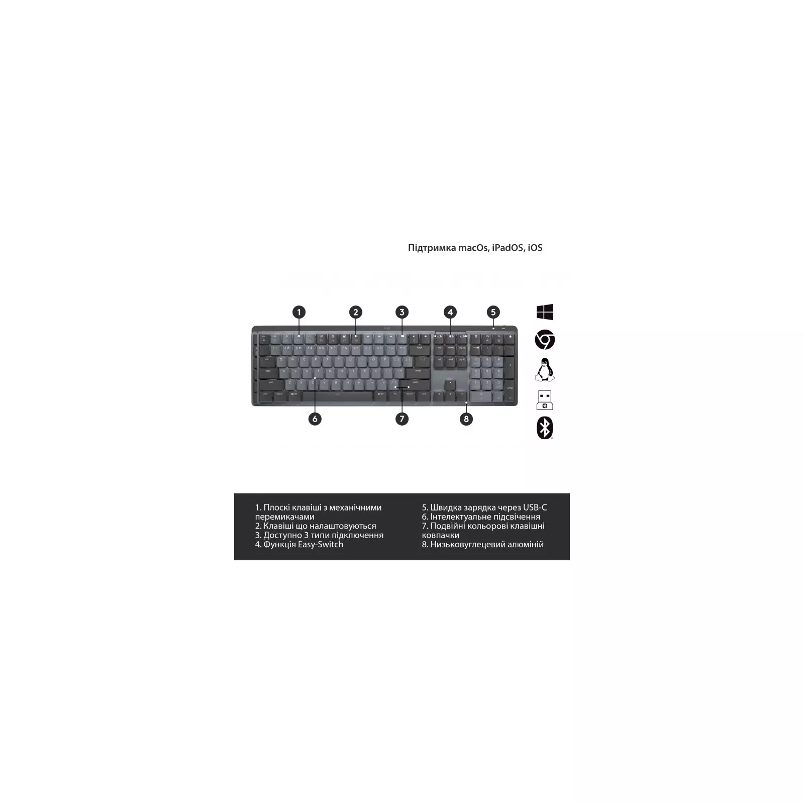 Подсветка клавиш автоматически подстраивается под окружение и, стоит вам отойти, отключается для экономии заряда батареи. Режим экономии энергии выключает подсветку, как только заряд аккумулятора опускается ниже 10%, чтобы продлить время работы. Вы можете быть уверены, что углеродный след при производстве клавиатуры MX Mechanical сведен к нулю. Это связано с тем, что мы не только придерживаемся принципов устойчивости при проектировании, но и компенсируем свое остаточное воздействие, поддерживая леса, возобновляемые источники энергии и сообщества, которые подвергаются