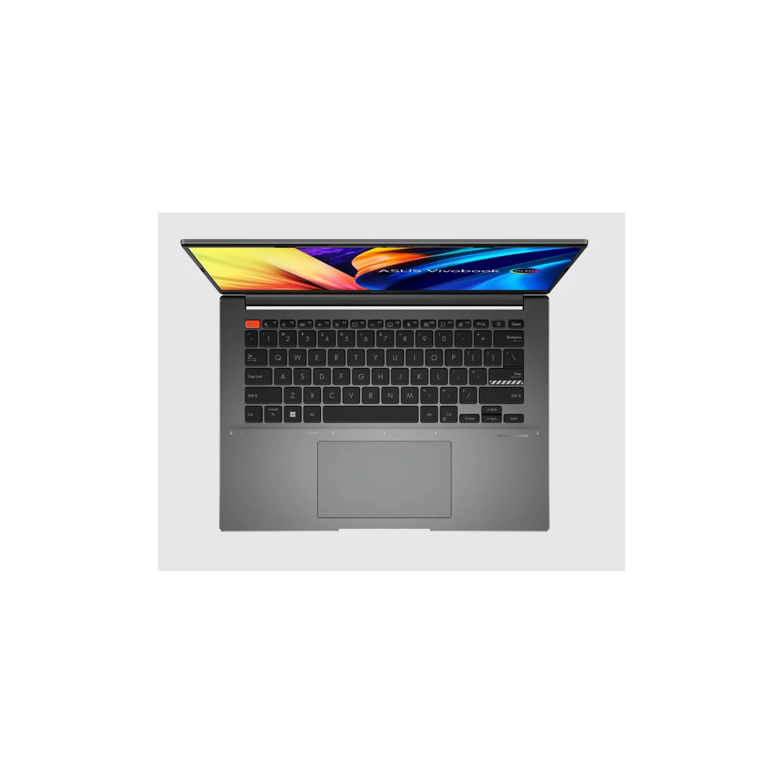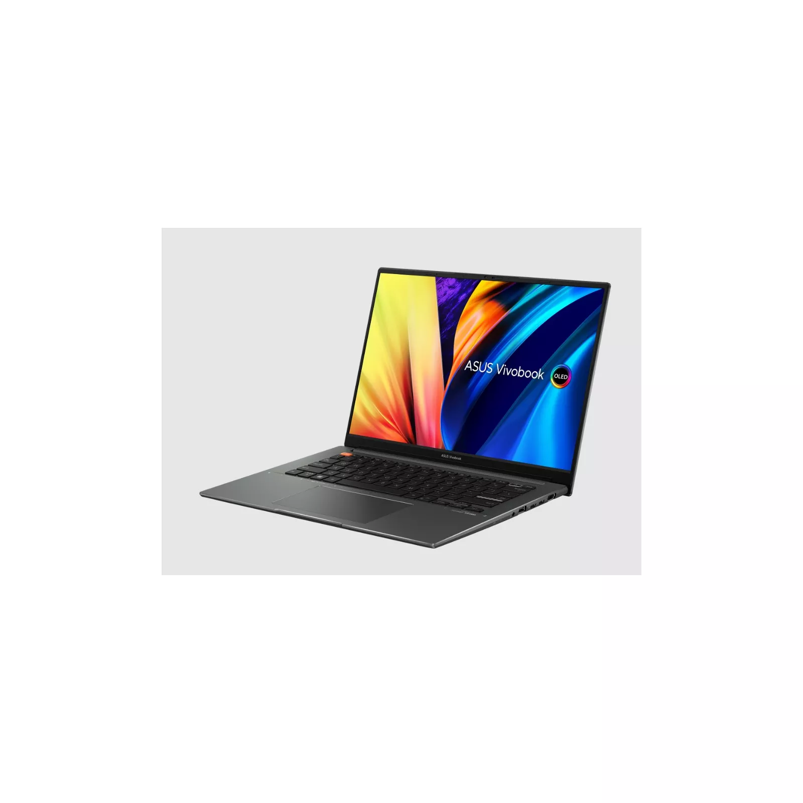 Тихее, холоднее и быстрее! Vivobook S 14X OLED отличается эффективным охлаждением за счет оптимизированных компонентов: тепловых трубок диаметром 8 и 6 мм и вентилятора IceBlade. 97-лопастная крыльчатка изготовлена из прочного жидкокристаллического полимера, поэтому она легче и тоньше, чем у обычных вентиляторов. Кроме того, вентиляторы IceBlade работают на гидродинамических подшипниках, способствующих снижению вибрации и шума по сравнению с подшипниками других типов. Как результат, в производительном режиме Performance термопакет процессора достигает 45 Вт без перегрева! сторон 16:10, широкими углами обзора и ультратонкой рамкой – относительный размер экрана составляет 87.4%, за счет чего ноутбук стал компактнее. Точность цвета и глубокий черный цвет подтверждены сертификатами Pantone Validated и VESA DisplayHDR True Black 600. Эргономика дисплея, в том числе низкий уровень излучаемого синего света, сертифицирована лабораторией TV Rheinland. Vivobook S 14X OLED создан для активной жизни, подтверждением чего является аккумулятор емкостью 70 Вт*ч. Такой запас энергии поможет оставаться производительным настолько, насколько хватит воображения. . Оригинальные декоративные элементы есть и внутри – клавиша Enter выделена полосками, а клавиша ESC – оранжевым цветом. Область под клавиатурой украшена слоганом серии Vivobook, отражающим исследовательское отношение к миру. Крышку ноутбука можно раскрывать на 180°, кладя ее на стол. Это особенно удобно при обсуждении проектов с единомышленниками.