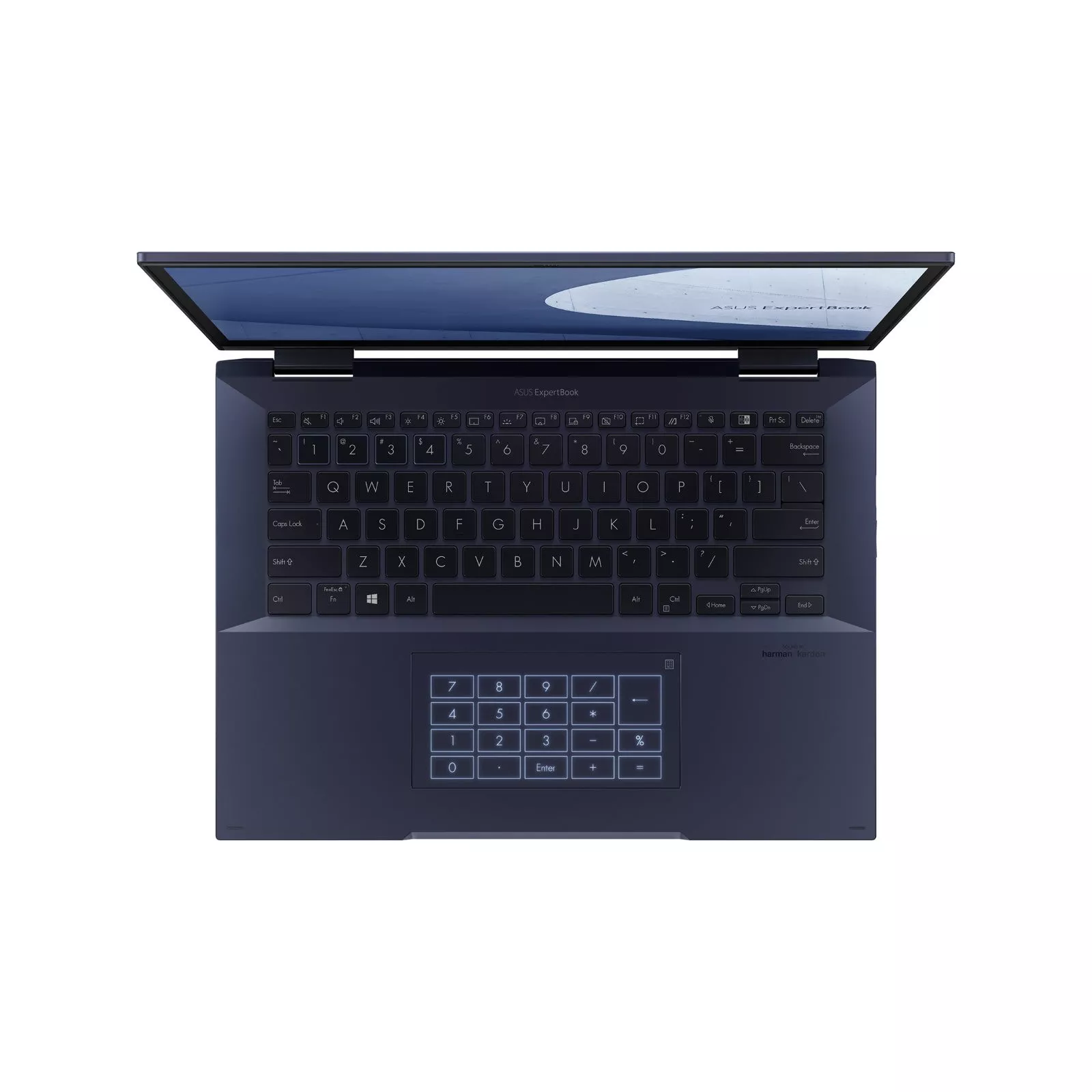 ASUS ExpertBook B7 Flip – это корпоративный ноутбук-трансформер премиального класса с поддержкой сетей 5G*, благодаря раскрывающемуся на 360° экранному шарниру он может использоваться как планшет, а целый ряд дополнительных функций (индикатор системного). статуса, частный режим Private View, утилита ExpertWidget и др.) помогут организовать комфортное рабочее место даже в мобильных условиях ExpertBook B7 Flip – универсальный инструмент, который позволит вашему бизнесу выйти на новый уровень производительности!