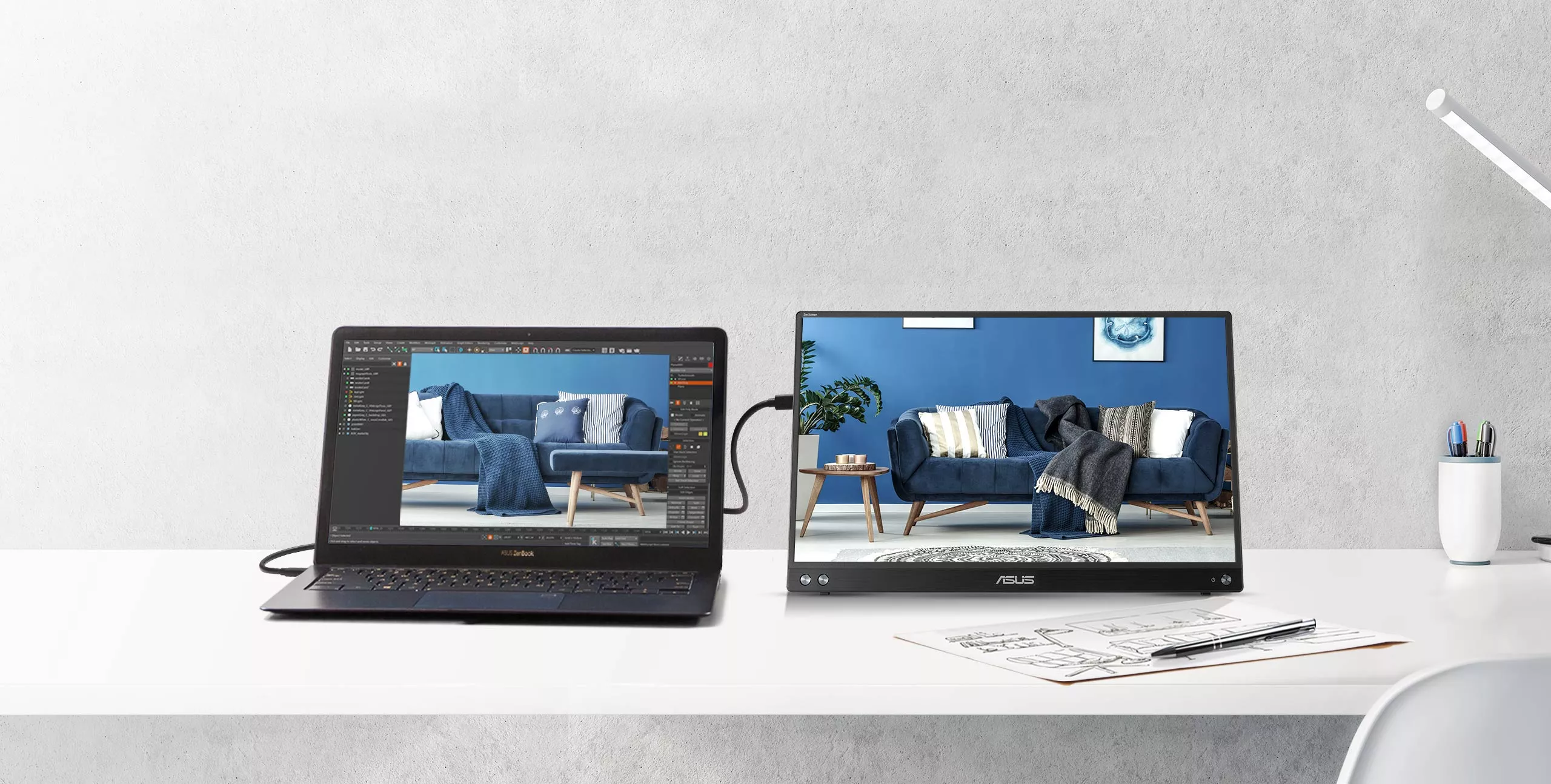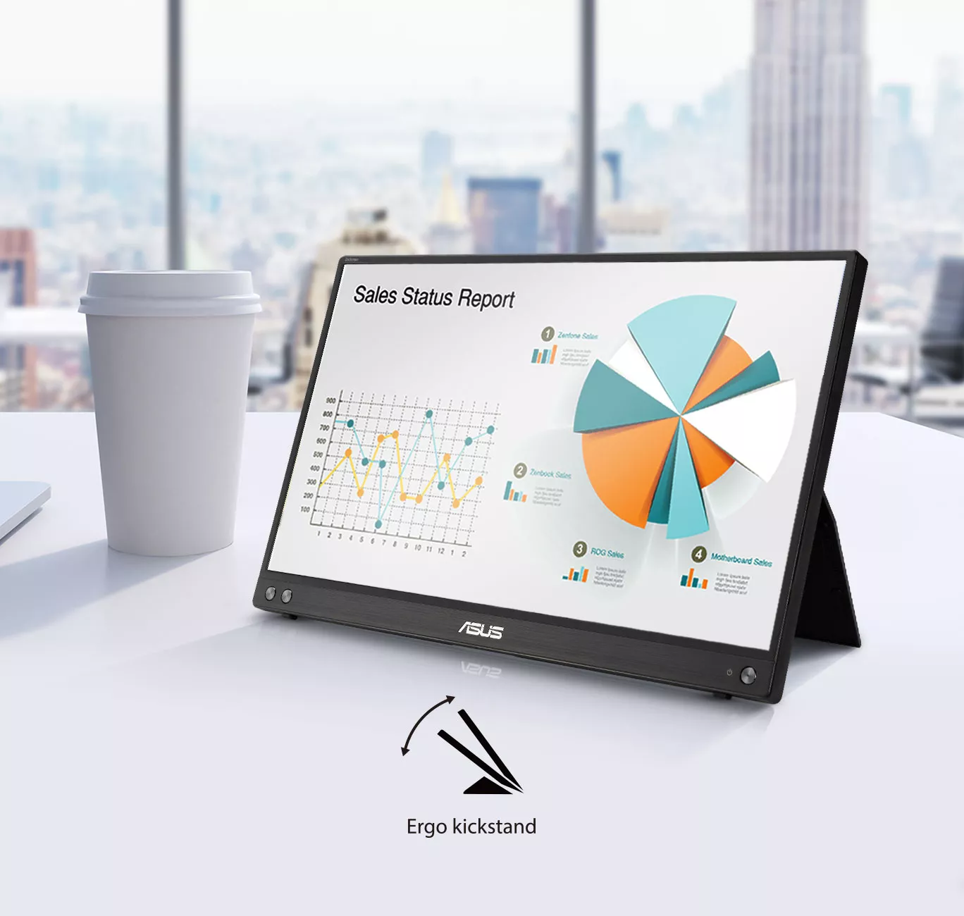 ZenScreen™ MB16ACV идеально подходит для использования в качестве второго монитора для двухэкранных презентаций, а его универсальность значительно повысит вашу эффективность на ходу. Он невероятно легок – весит всего 0,83 кг, а также имеет сверхтонкий профиль 10,5 мм, поэтому помещается в любой дорожной сумке.