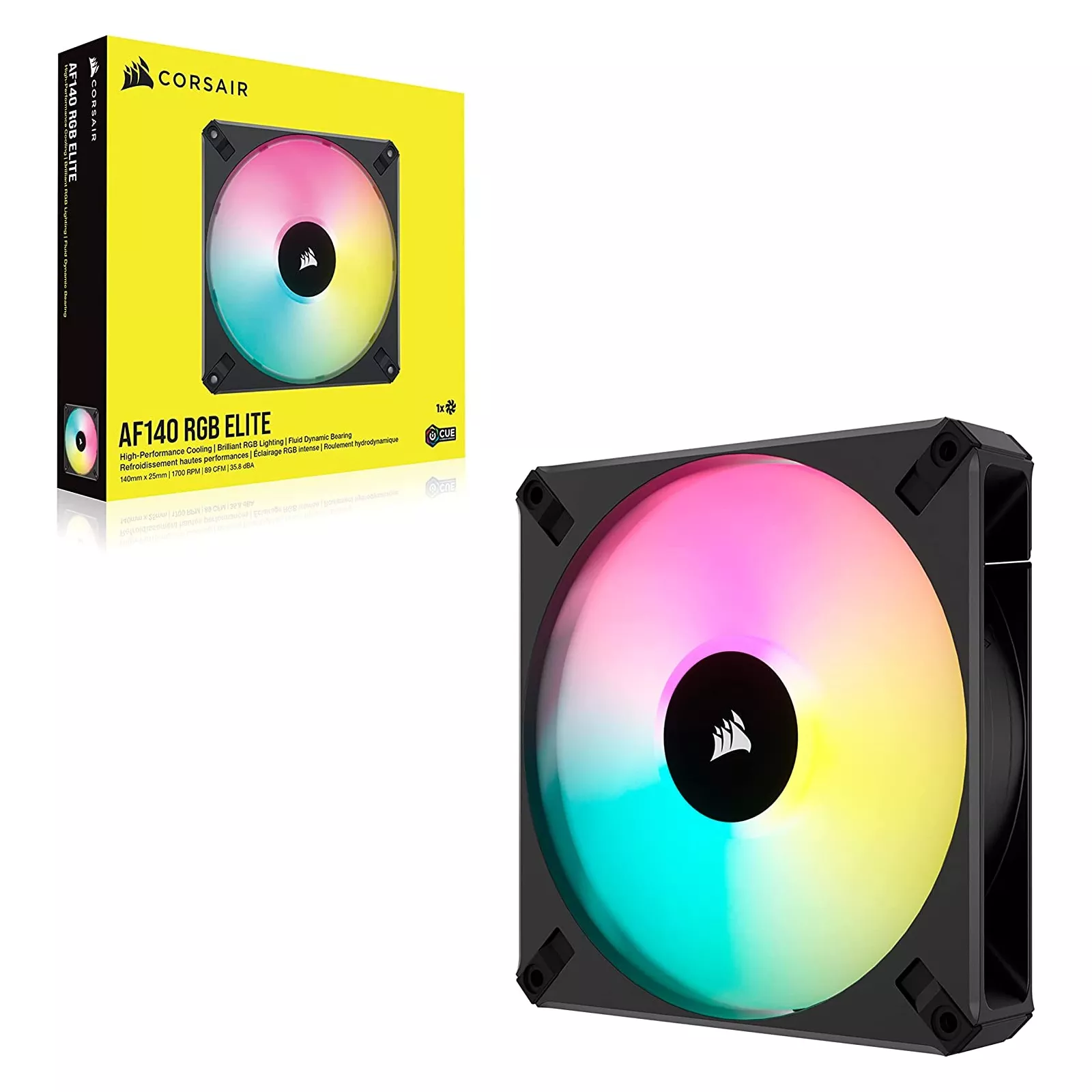 iCUE AF140 RGB Elite — 140-миллиметровый вентилятор для корпуса с RGB-подсветкой от компании Corsair. Вентиляторы серии AF RGB ELITE обеспечивают идеальный баланс между низким уровнем шума, сильным статическим давлением и мощным воздушным потоком.