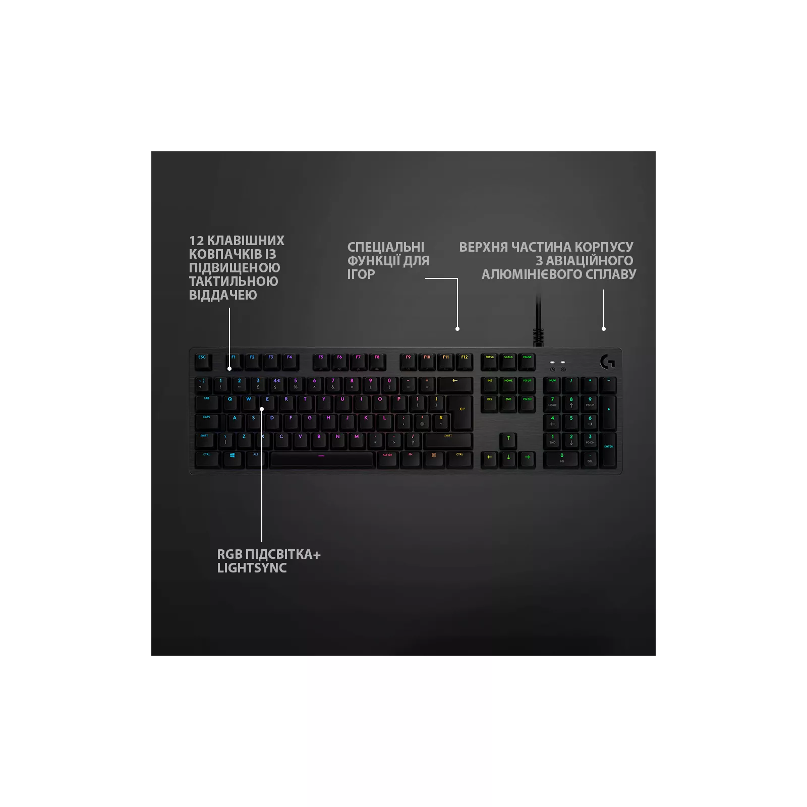 Клавиатура G512 отличается превосходными характеристиками и может быть оборудована разными типами инновационных механических переключателей GX. Ультрасовременные игровые технологии и алюминиевая конструкция – благодаря этому модель G512 воплощает в себе простоту и надежность, которые сочетаются с широкими возможностями.