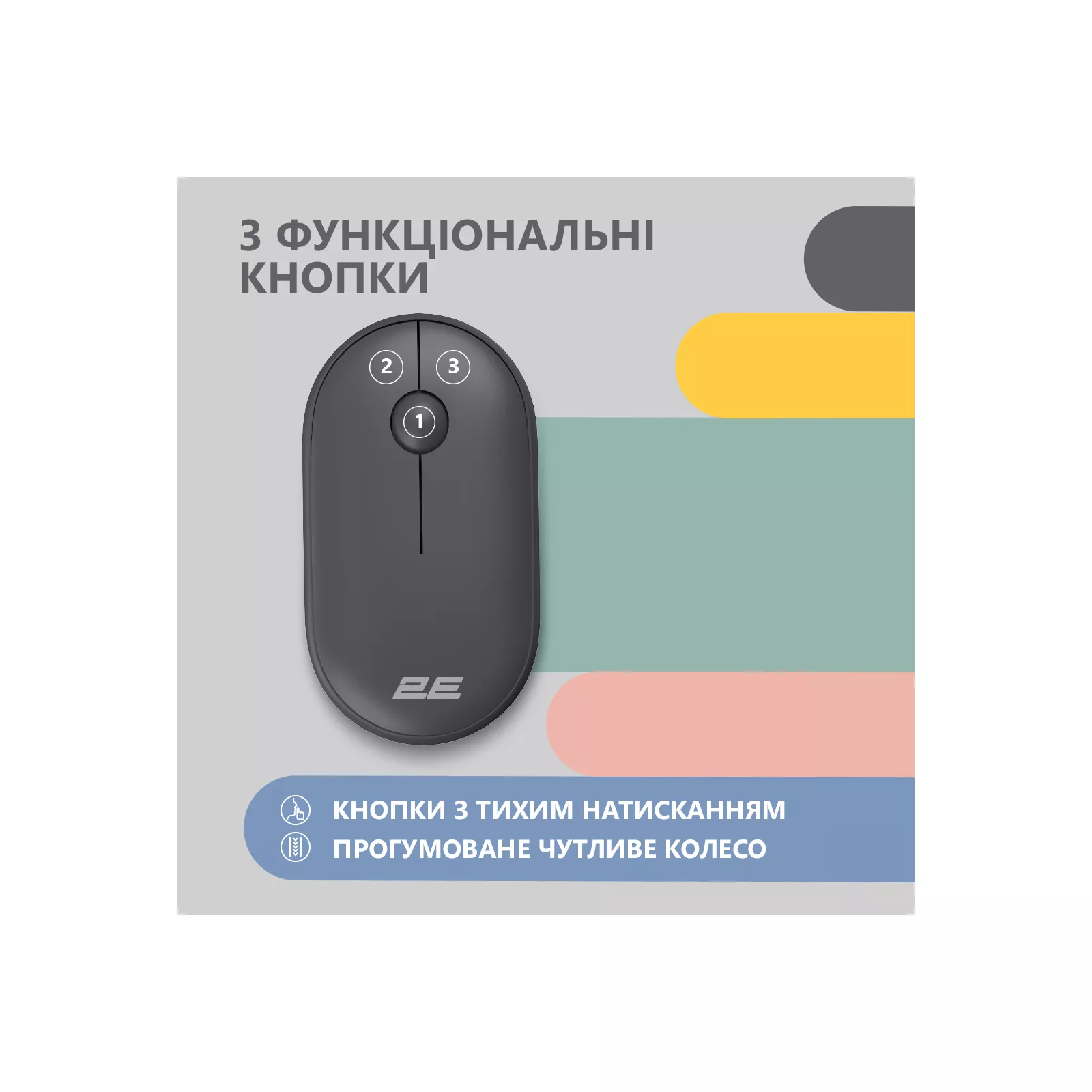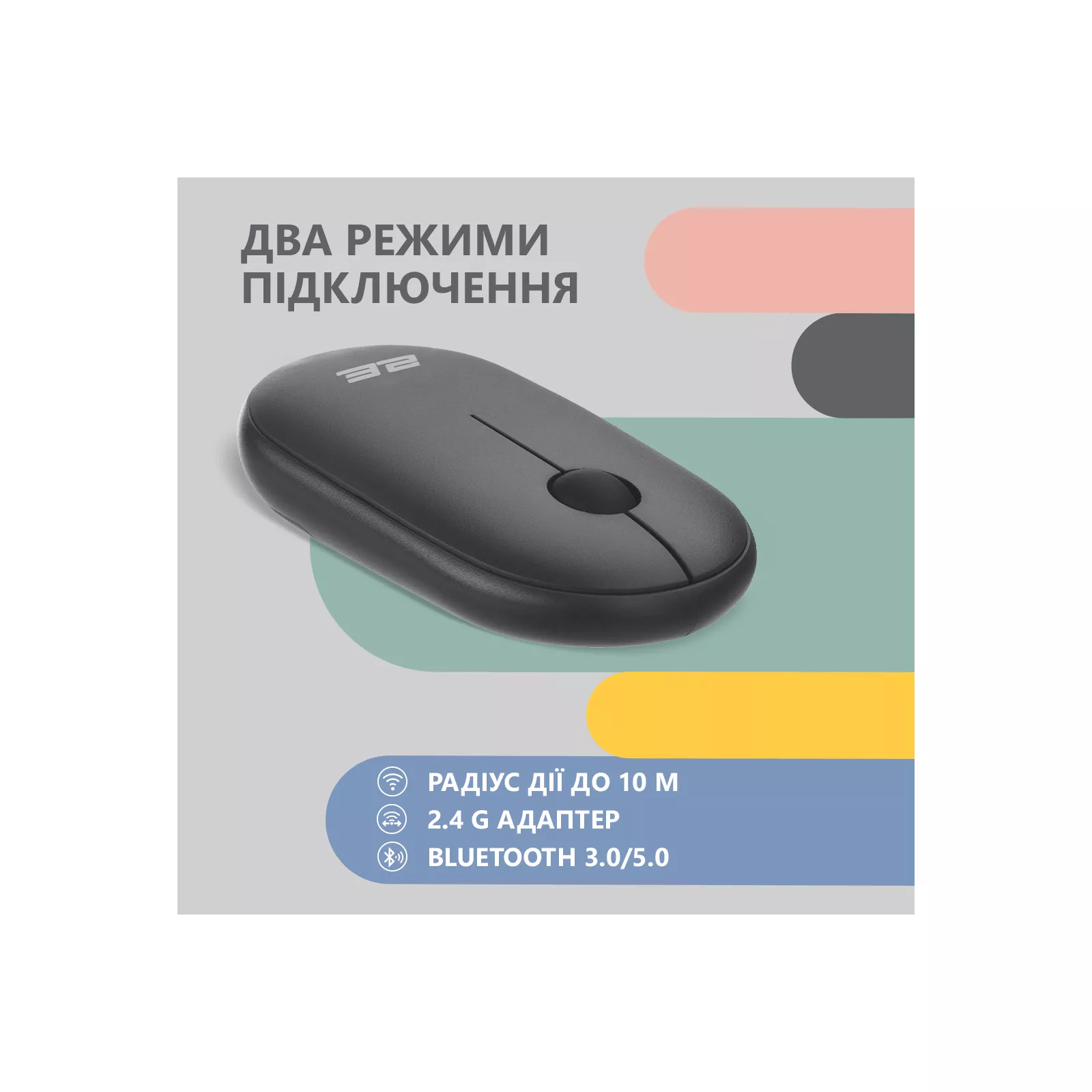 Беспроводная мышь 2E MF300 имеет минималистичный дизайн, отлично подойдет пользователям, которые ценят мобильность, яркость и практичность. Кнопки с тихим нажатием, чувствительное колесо прокрутки. Тонкий корпус помещается в любую сумку. Универсальная мышка имеет два режима подключения через адаптер 2.4G и Bluetooth 3.0/5.0. Совместим с устройствами на Windows, Android, Mac OS.