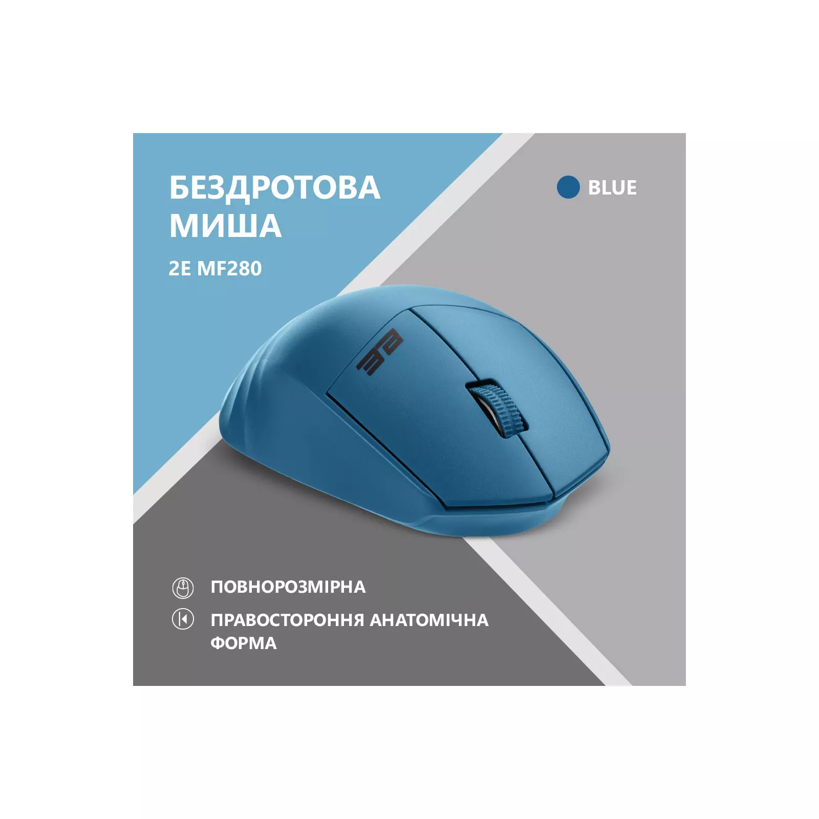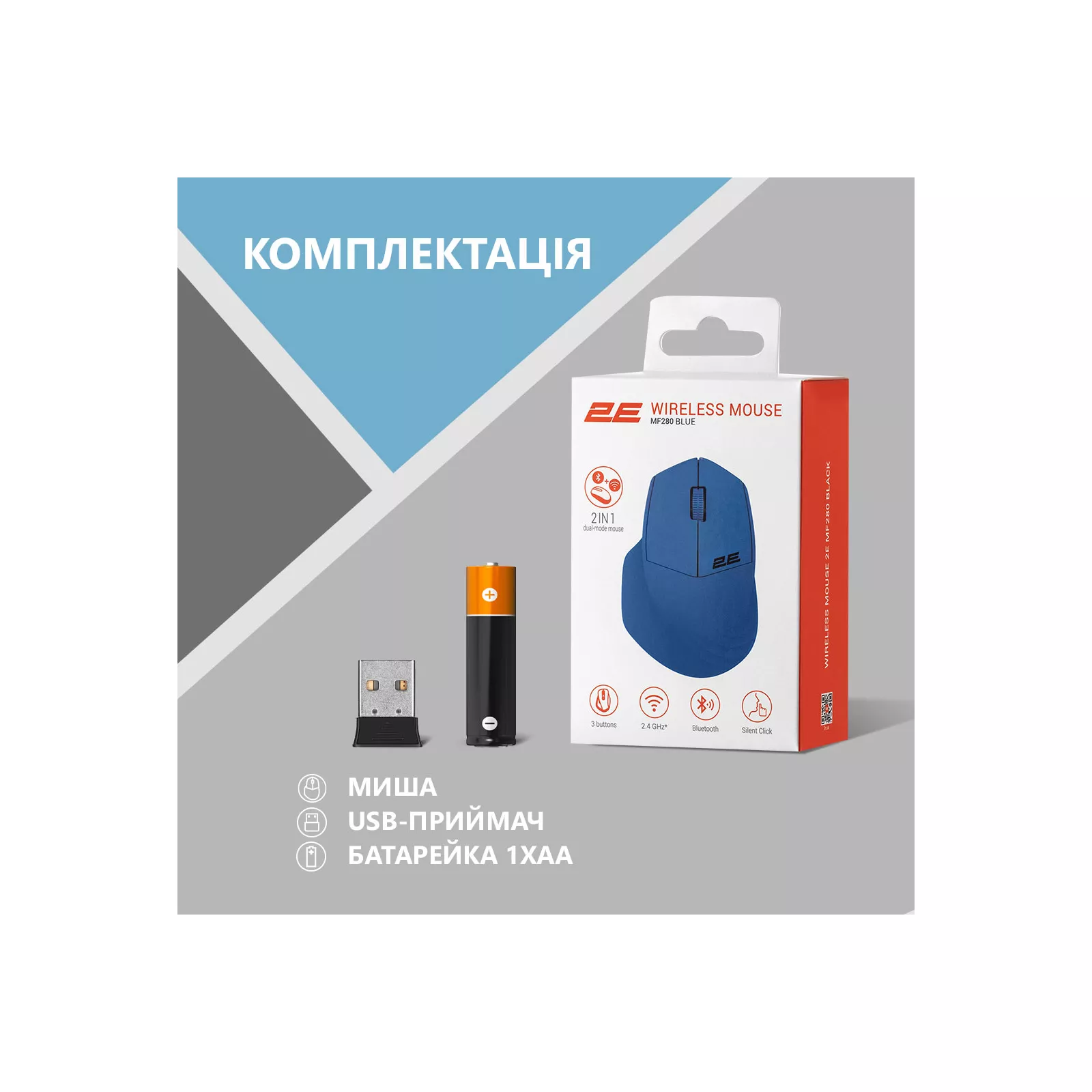 Полноразмерная большая мышь 2E MF280 Silent WL BT анатомической формы, выполненная в сдержанном дизайне.
