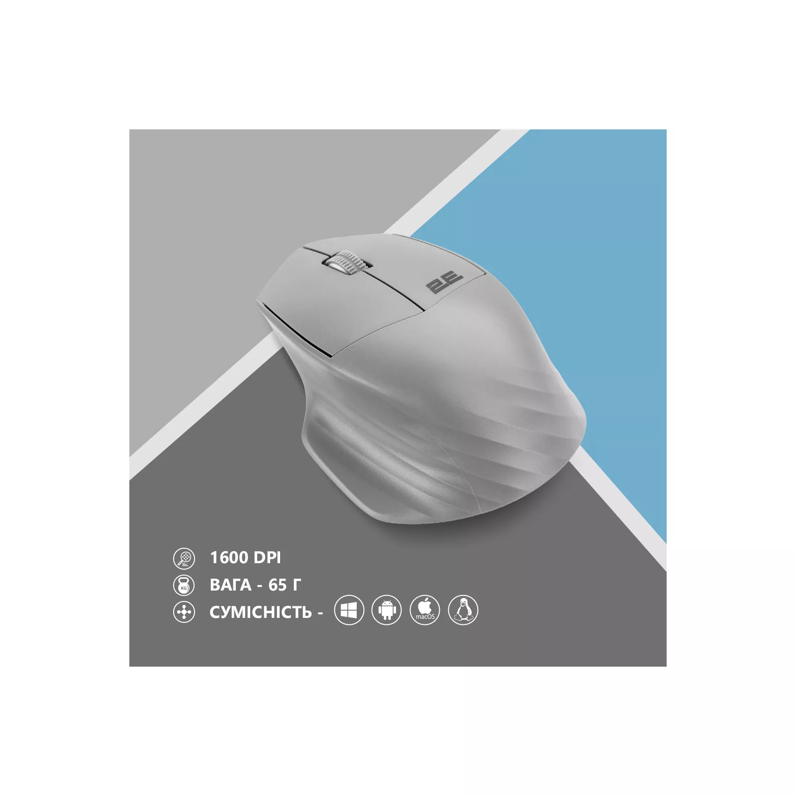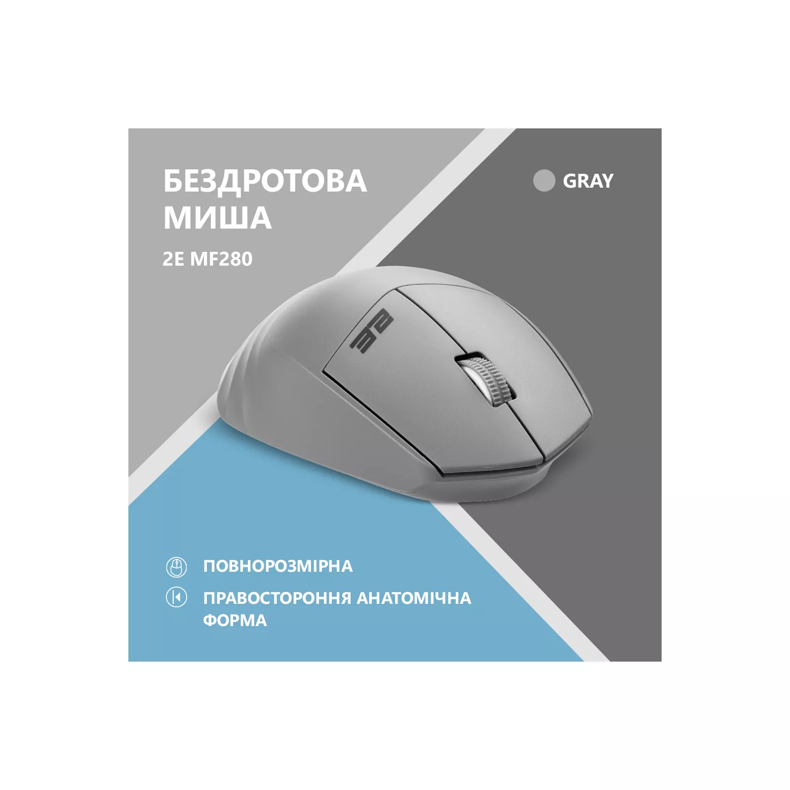 Полноразмерная большая мышь 2E MF280 Silent WL BT анатомической формы, выполненная в сдержанном дизайне.