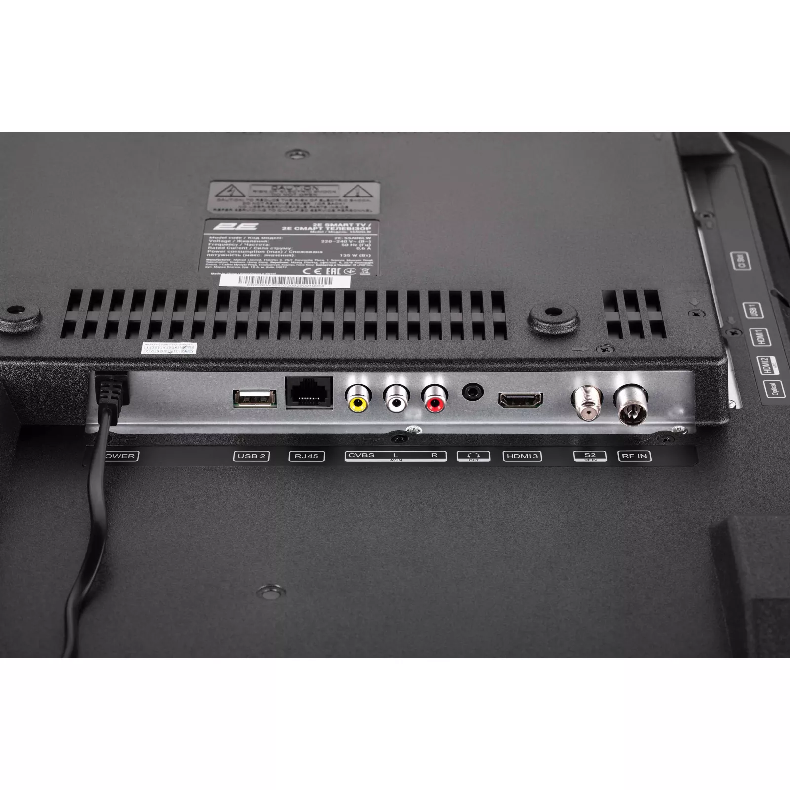 Телевизор 2Е 55A06LW обладает полным набором важных интерфейсов. Кроме USB, RF/T2 и RF/S2, модель оснащена и укомплектована CVBS для подключения AV-устройства, mini-jack 3,5 мм, CI Card, мультимедийным интерфейсом высокой четкости HDMI версии 2.0, оптическим цифровым телевизионным звуковым выходом и RJ-45 для подключения к интернету.